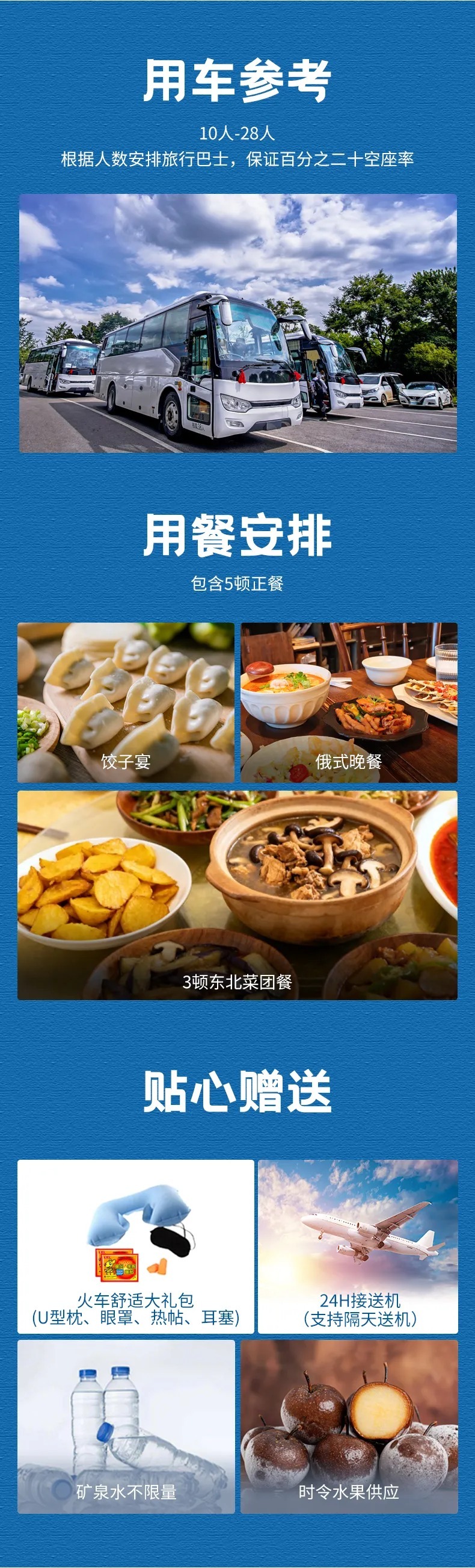 1、赠送包含饺子体验+农家菜1顿+俄式晚宴1顿;