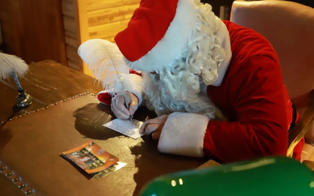 15:30随后驱车一路向西,不一会便抵达【圣诞村】, 这里有由英国工程设计院设计的圣诞老人之家、圣诞邮局、圣诞广场、圣诞礼品商店等,我们先去找到圣诞老人,看看谁能先找到圣诞老人合影呢?随后我们进行圣诞老人单独合影(家庭为单位),圣诞老人也会给每一个小朋友写下祝福卡片。