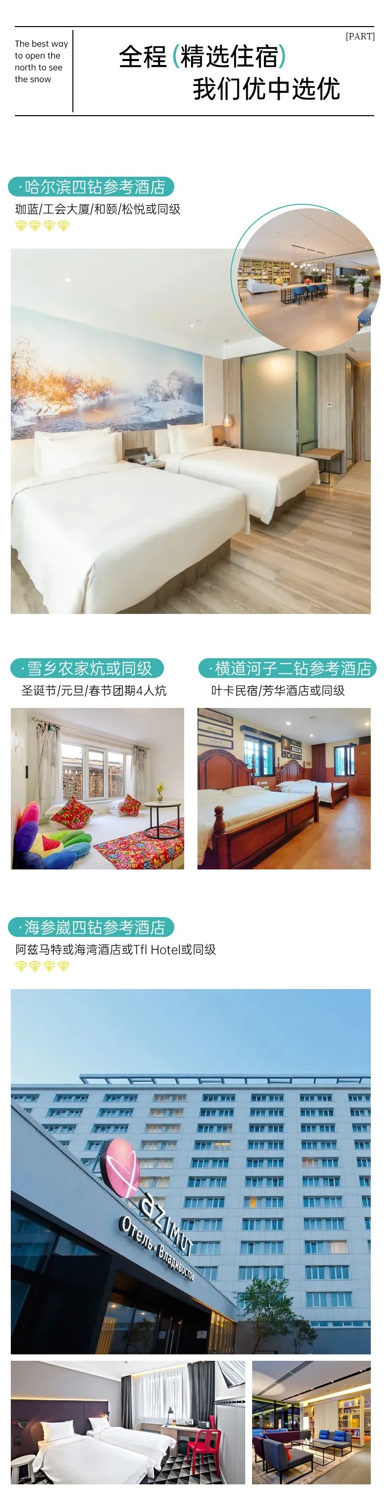 住宿:横道河子民宿标间(如遇满房改住海林/牡丹江4钻酒店)