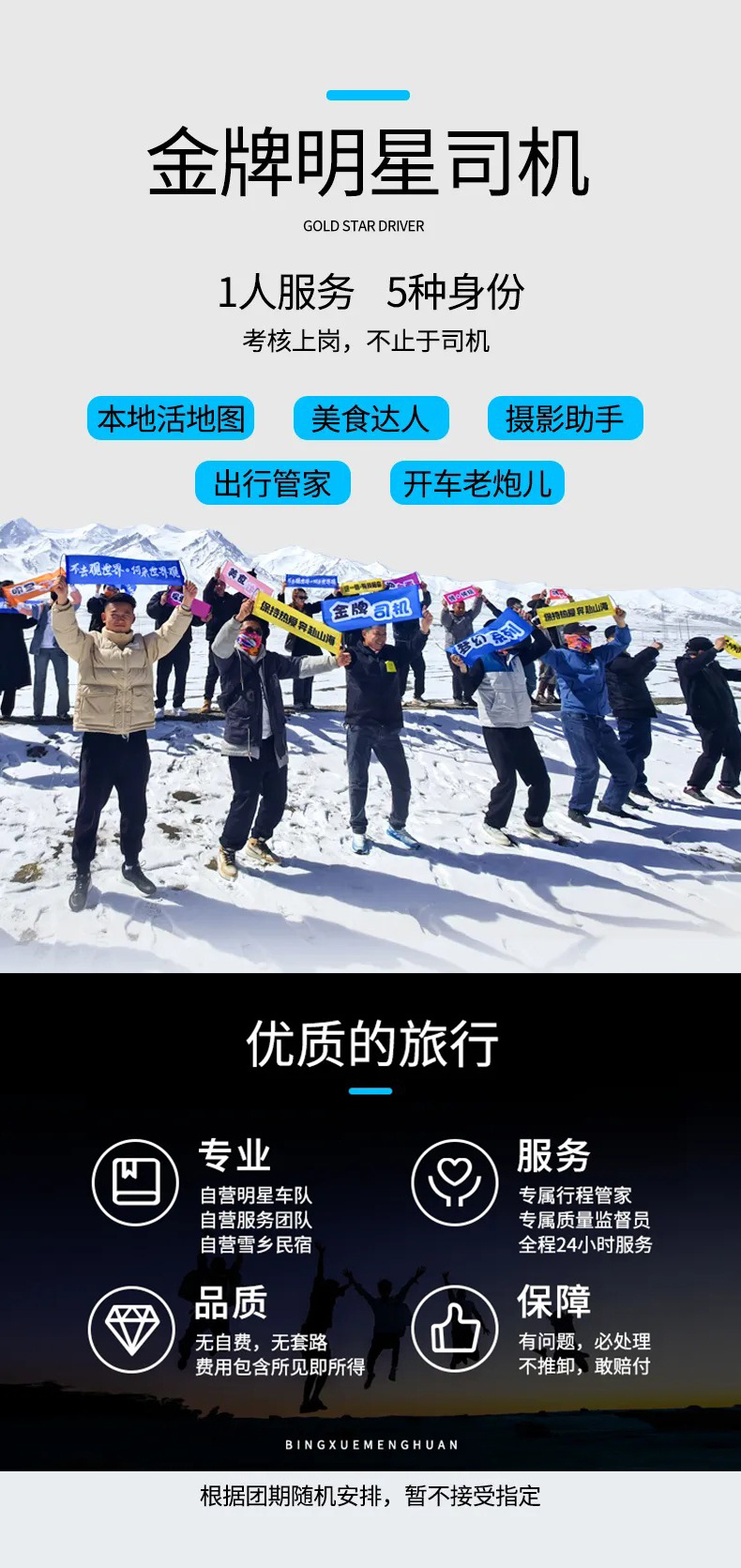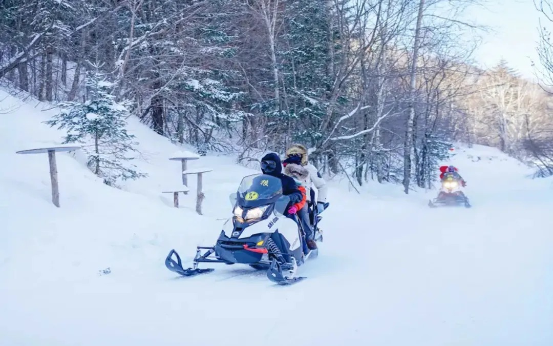 08:30前往【梦幻雪山】,我们来到山脚,乘坐【网红雪地摩托】上山;我们在山顶一路上边走边玩,移步换景,大家互相打闹着,玩雪,千万要注意安全哦~