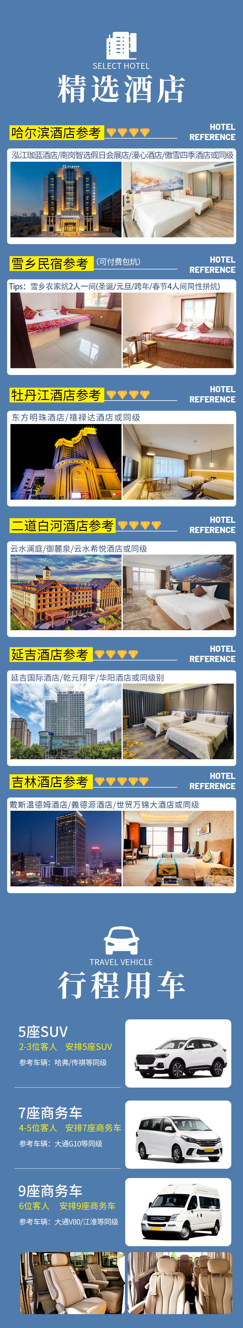 备注:钻级标准参考携程钻级标准,东北经济发展较差,酒店已经是我们精心挑选的,但是和大城市同级别酒店相比各方面略差一些,敬请您谅解;