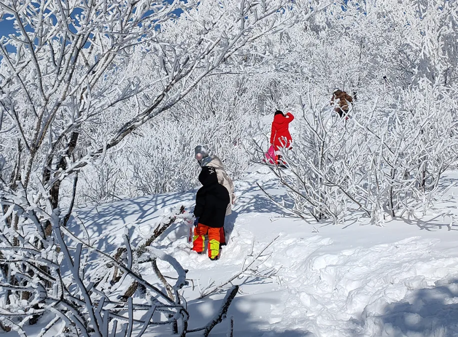 11:00适到达山顶,随后我们乘坐赠送给大家体验的【网红雪地摩托】一路冲刺,刺激下山~