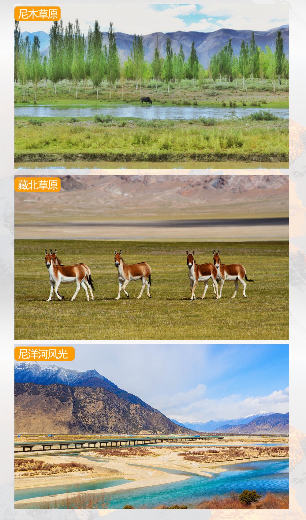 15:00途径尼木草原:尼木草原位于西藏自治区尼木县境内,318国道进入尼木县沿途可见,草原上有成群的马牛,琼穆岗日雪山下的尼木河孕育了水草丰茂的尼木草原,给一路单调的土地和无垠的荒漠增添了一道艳丽的色彩。