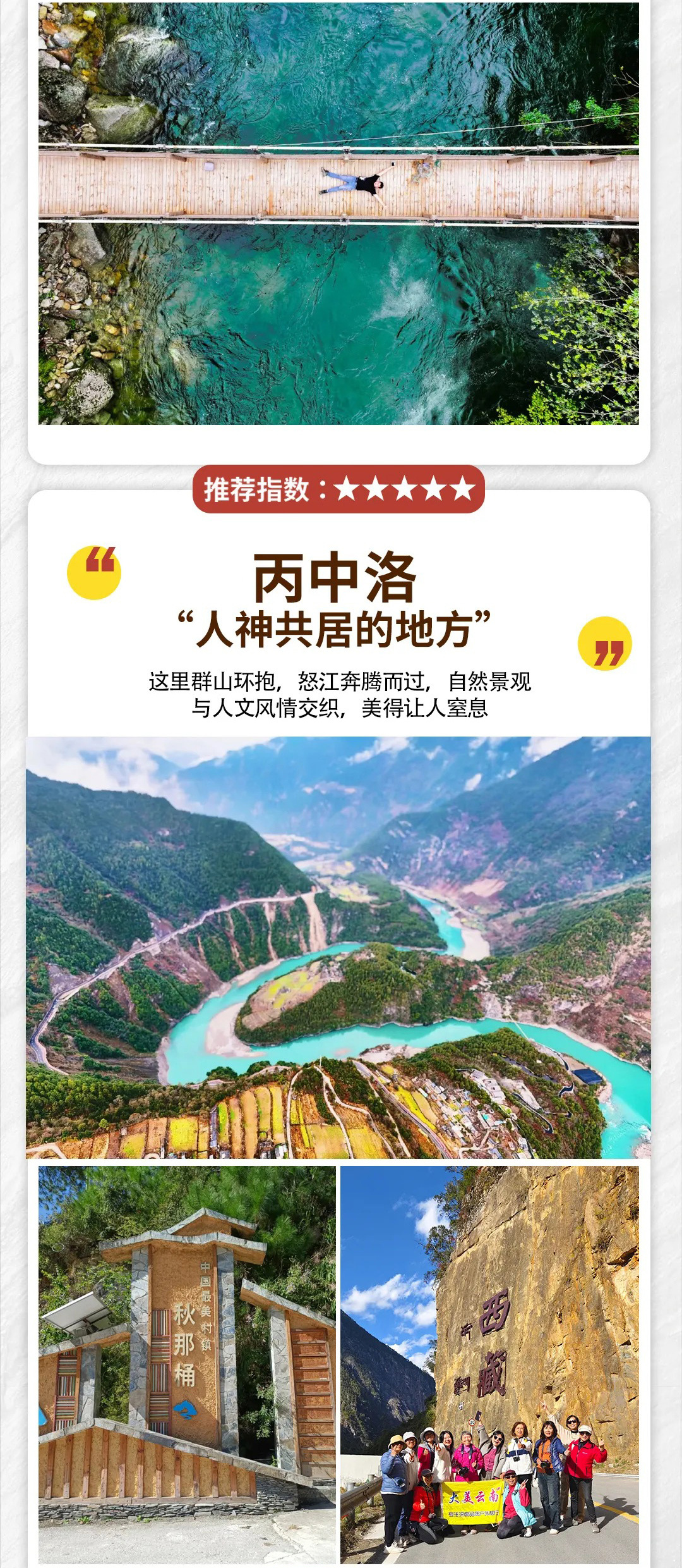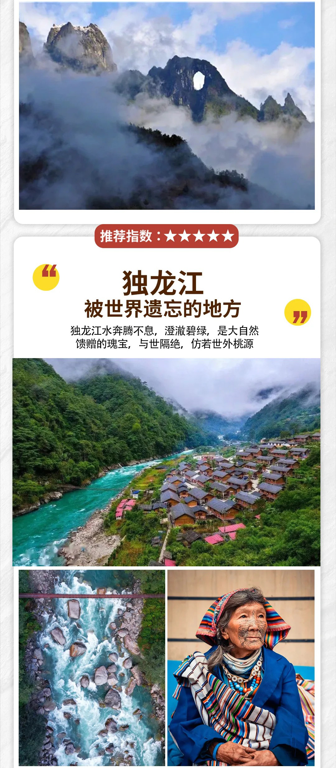 7、怒江平均海拔2000米以下,冬春加保暖衣,夏秋以衬衣为主,但注意带上雨具;独龙江海拔最高地带有三千多米,冬春应带户外三件套+薄羽绒服