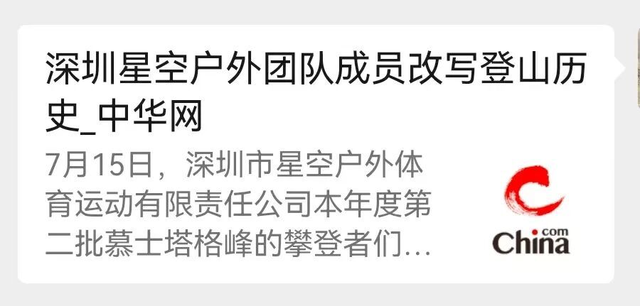 2025年7月25日,助力14岁上海女孩吴怡润成为慕士塔格峰最年轻的女性登顶者。被人民日报、中华网以《深圳星空户外团队成员改写登山历史》持续报导。