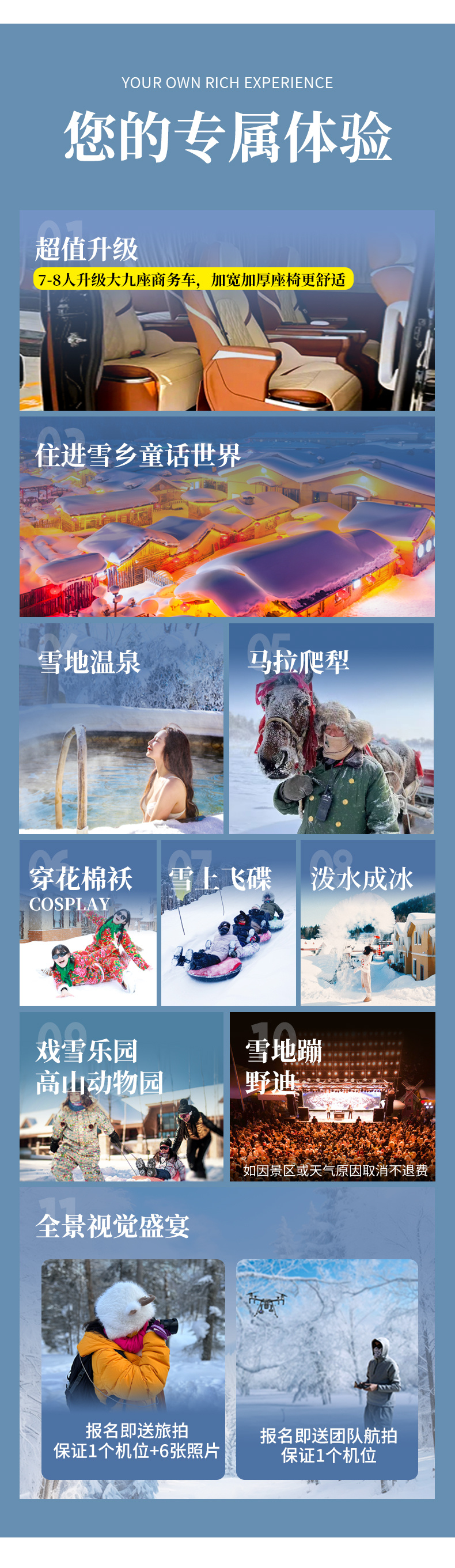 4、赠送雪乡雪地蹦迪晚会(如遇景区原因或大风等天气原因不举办不退费用)。