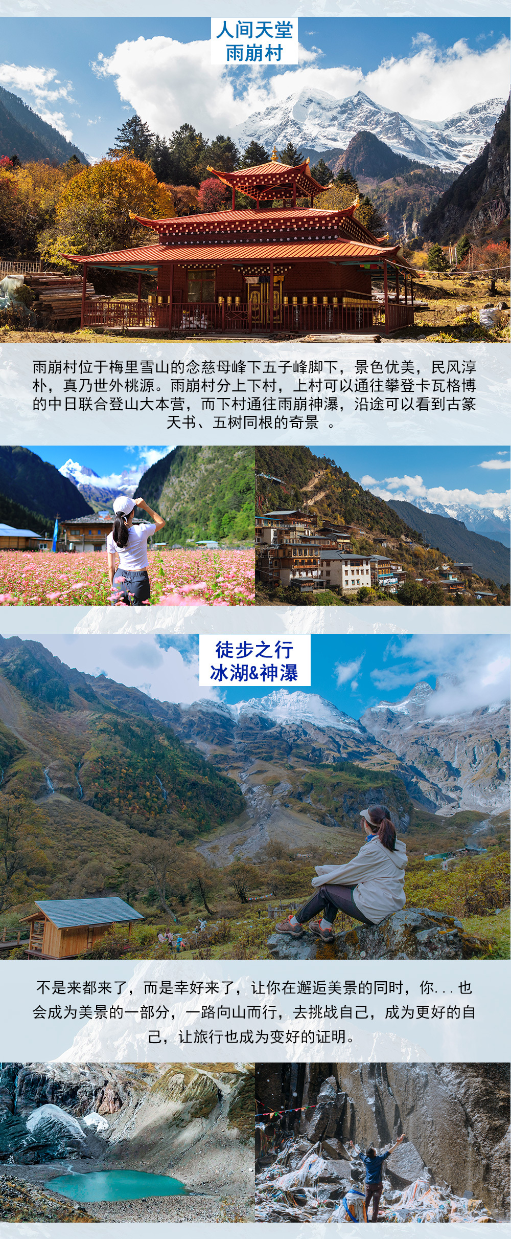 备注:以上价格仅区别雨崩村三晚住宿;丽江、飞来寺 住宿一致;