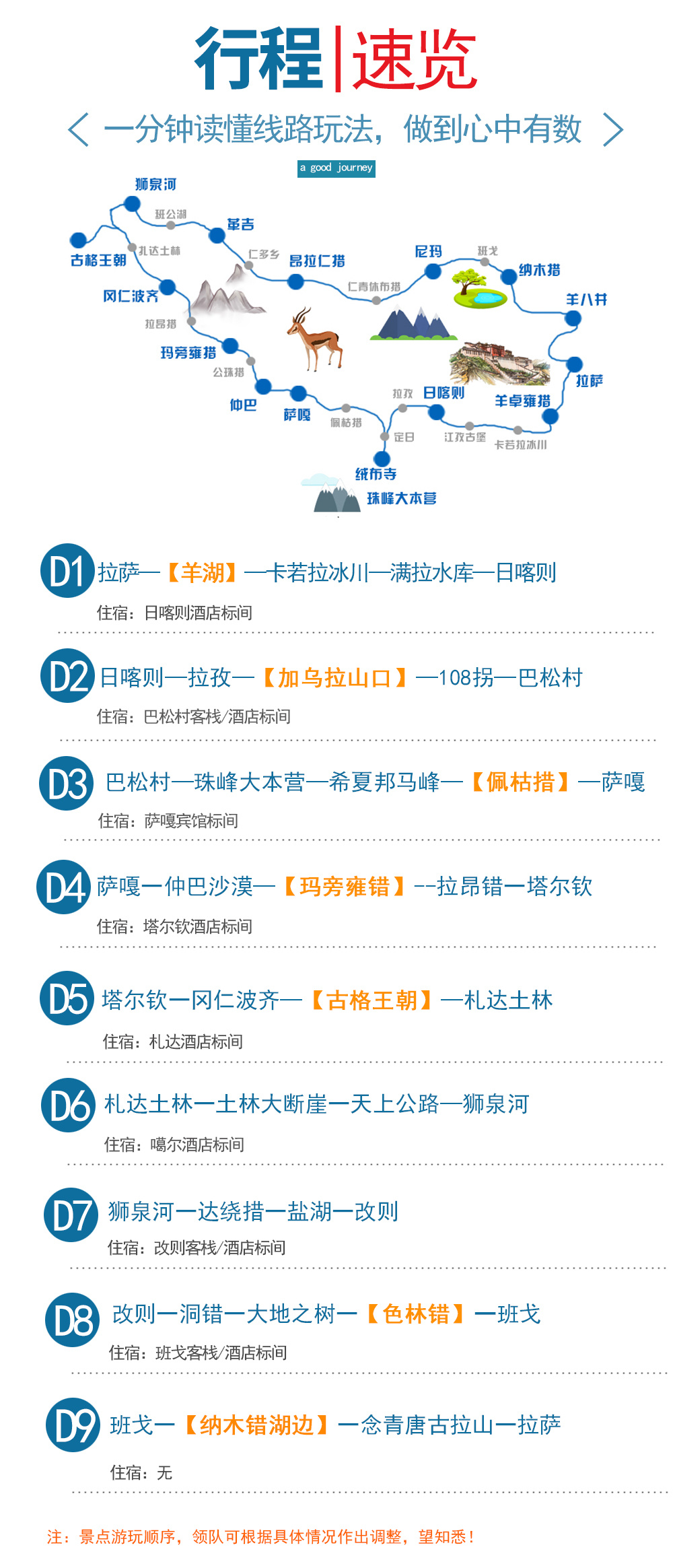 2、领队:全程由经验丰富的领队兼司机,熟悉路况、沿途景点、驾驶技术好,为您的旅途保驾护航!