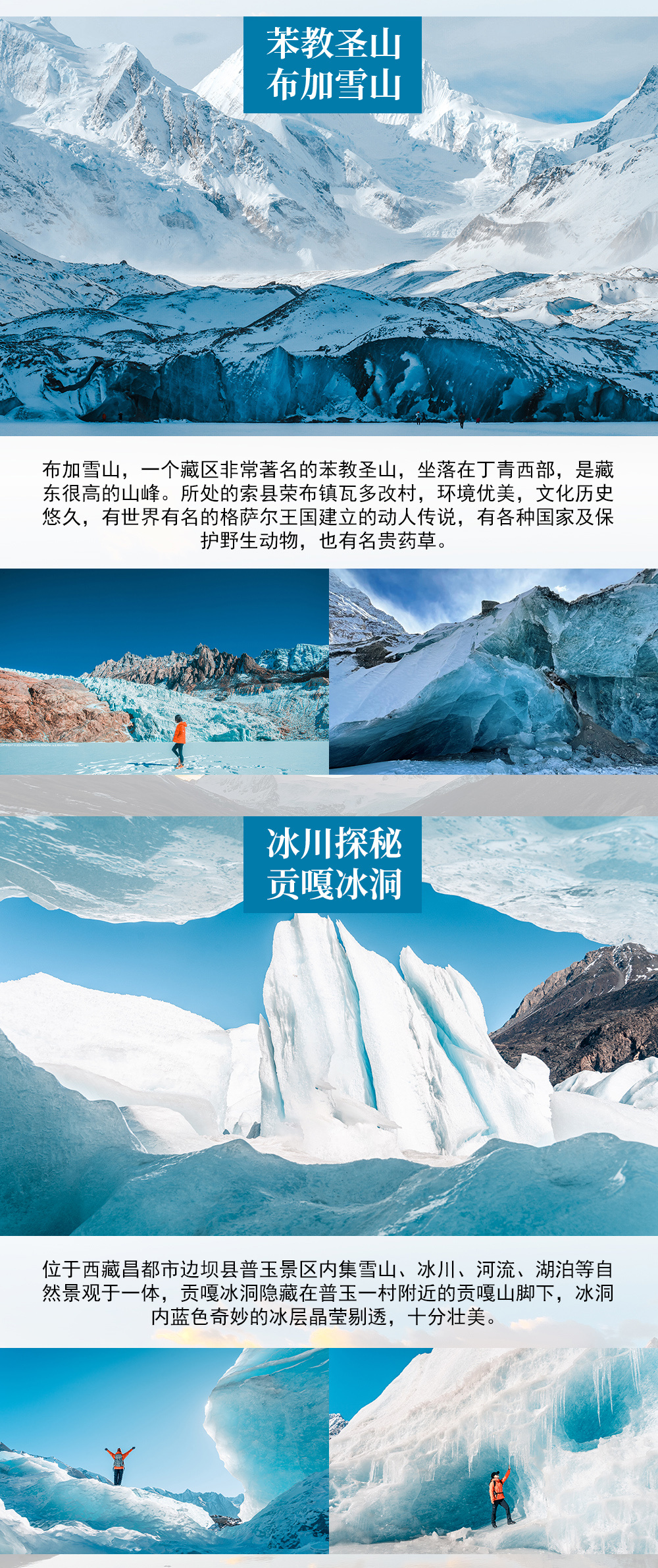 海拔:贡嘎冰洞4100米、祥格拉冰川4200米、边坝县3700米