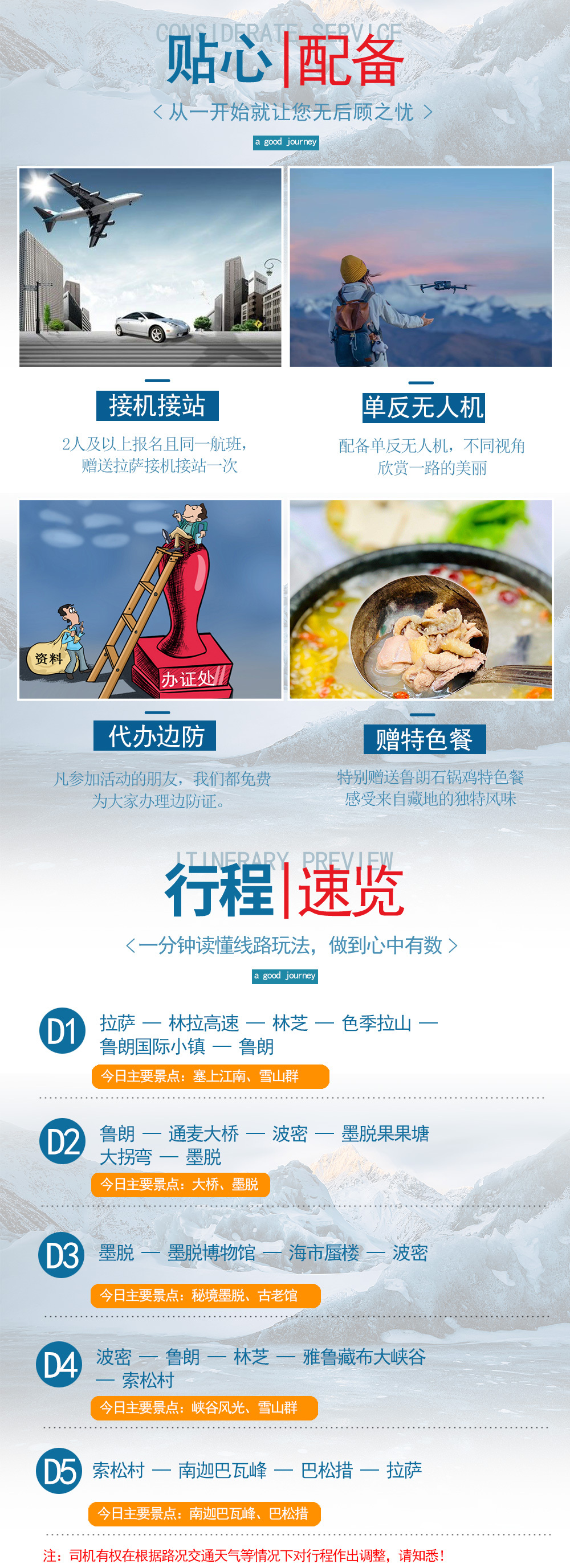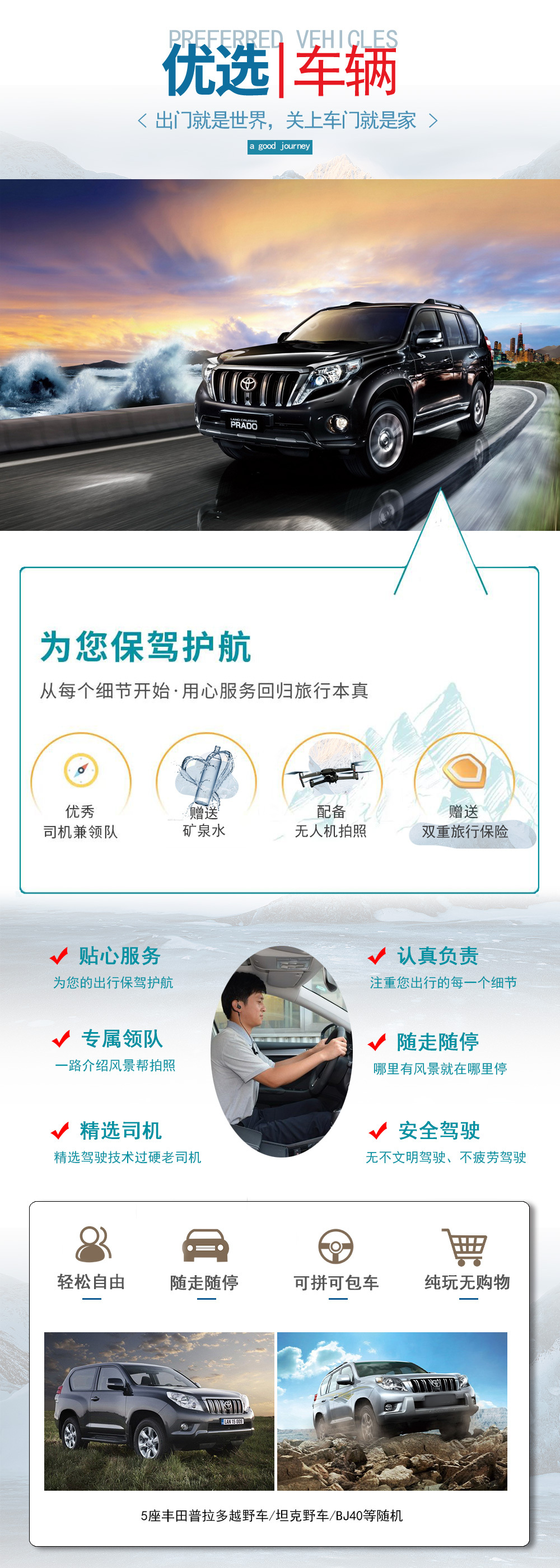 4、导游:司机兼领队,仅安排中文司机负责行程活动中接待服务(不提供景区讲解服务);