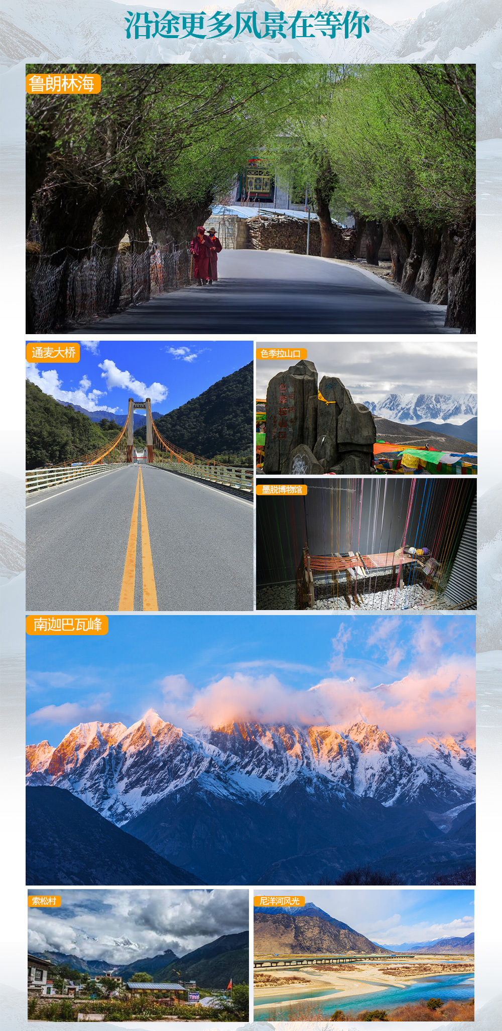 3、门票:全程景区门票(巴松措+观光车、雅鲁藏布江大峡谷(住在景区里,不含观光车,直接开车进入、卡定沟);