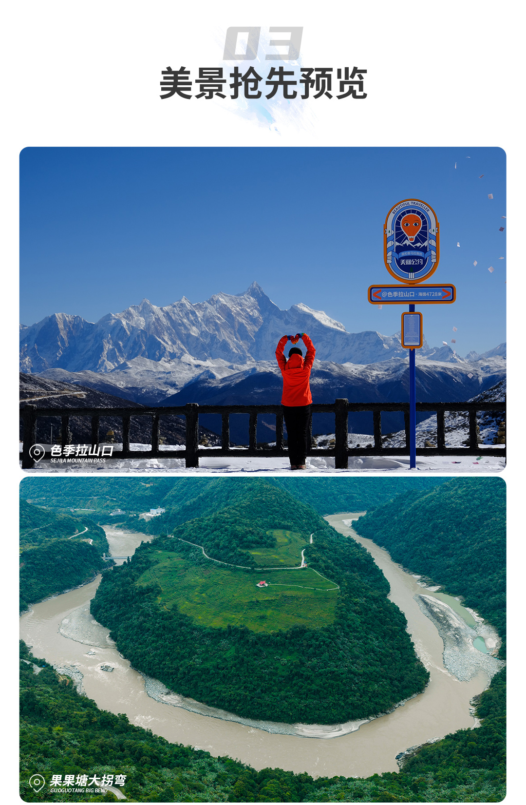 海拔:林芝3000米、色季拉山观景台4728米、鲁朗3700米