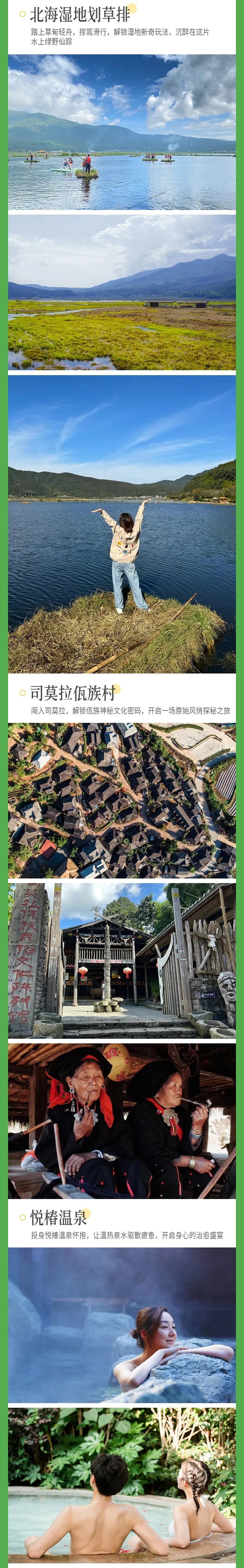 09:30 来到【北海湿地】,我国西南地区唯一的高原火山堰塞湖湿地,也是世界罕见的浮毯式草排湿地,被称作浮在水面上的草原。这也是广受各大综艺节目喜欢的取景地,沈腾的综艺《现在就出发》就在这里取景拍摄,我们也安排了综艺同款体验—【湿地划草排】活动,迎着清晨的悠闲阳光,在湖面上划着草排发发呆,多么的惬意。