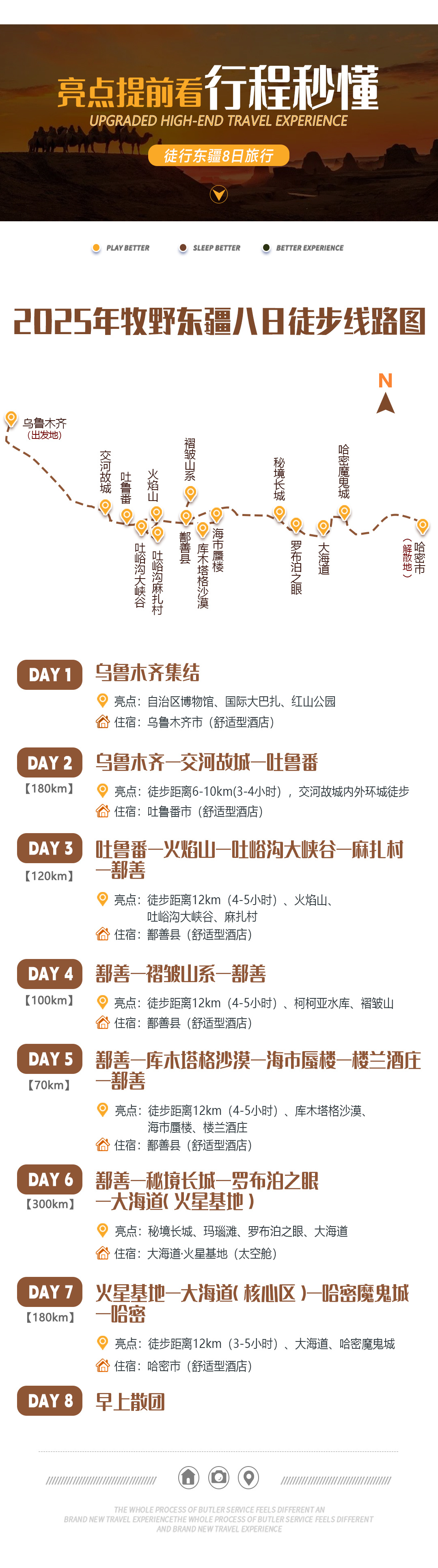 亮点:行程距离180km(3-5小时),徒步距离12km(3-5小时)