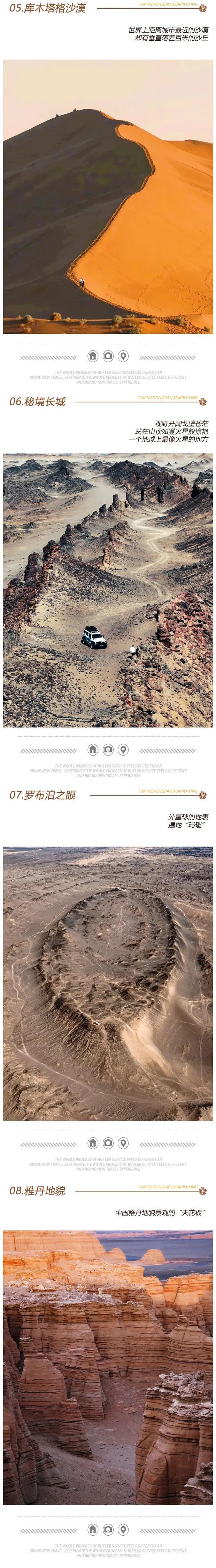 亮点:行程距离300km(6-8小时)秘境长城、玛瑙滩、罗布泊之眼、大海道