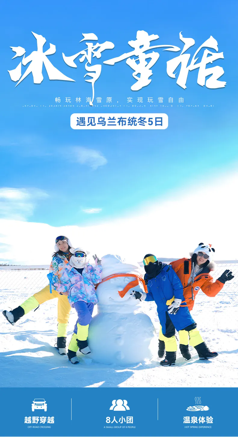 下午前往【塞北雪乡】【白家窝铺】玩雪撒欢。在这里,我们还可以体验泼水成冰,热水的水蒸汽四散开来完全暴露在空气中,在乌兰布统极度低温的状态下,就会形成类似雾状的形态,也可以堆雪人、打雪仗、高山滑雪......多种游玩项目带你找回童年的简单快乐!