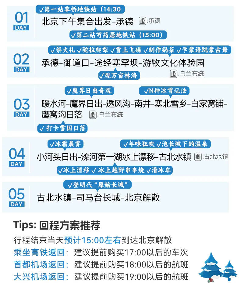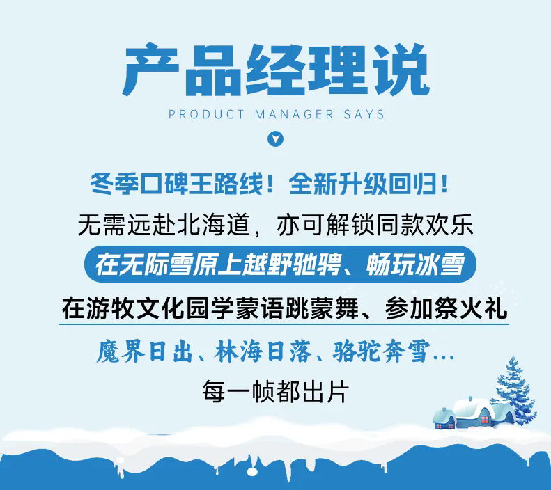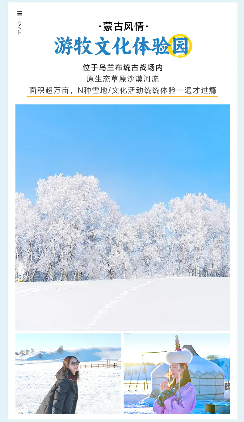 3、门票:乌兰布统、塞罕坝冬季不收费,如需收费请自理