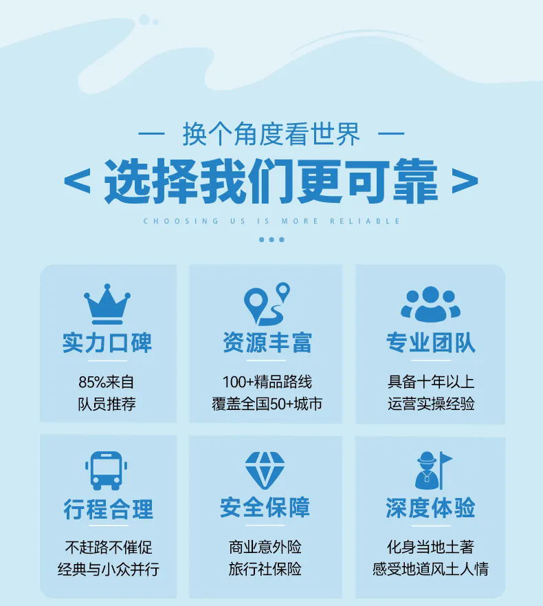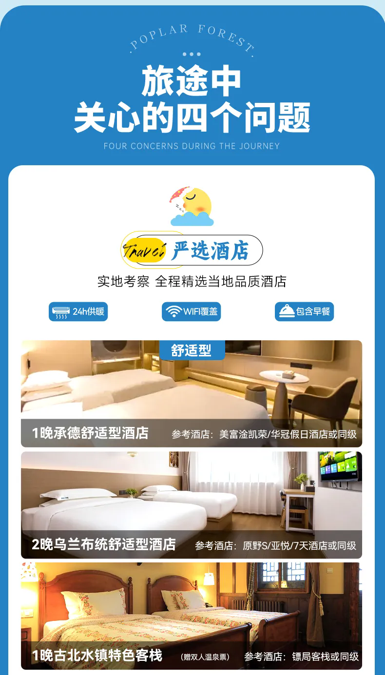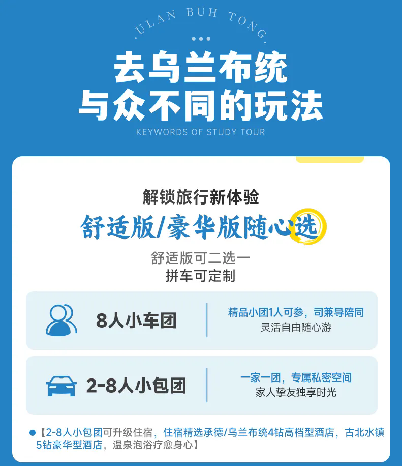 注意:8人拼车小团以上所有团期住宿为舒适型酒店标间