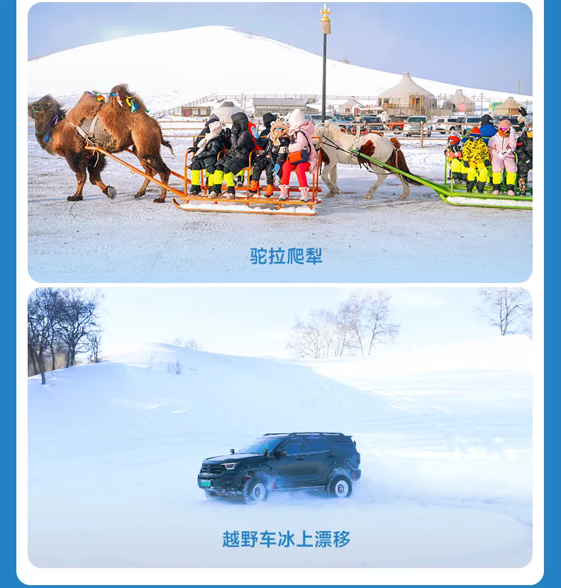 8、游牧文化体验园雪地勒勒车等娱乐体验、高山滑雪圈、冰上串串烧等
