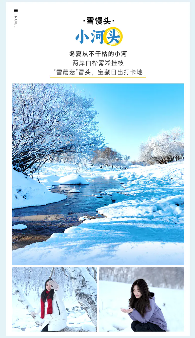 今天早起前往【小河头村】看日出,冬日的小河头依然有活水流淌,冰上有河柳灌木被冰雪覆盖,河水鼓泡冻成的冰花是这里的一绝,早晚雾气升起,极易形成雾凇。在这里感受冬季草原日出的壮丽,你可以看到雪中挺拔的白桦林,蜿蜒河流中洁白的雪馒头,小河头村风光、羊群出牧,你可以用手中的相机,定格冬季坝上的雪域风光。拿出准备好的保温杯,挑战【泼水成冰】,小伙伴们用手机拍下这神奇的一刻。