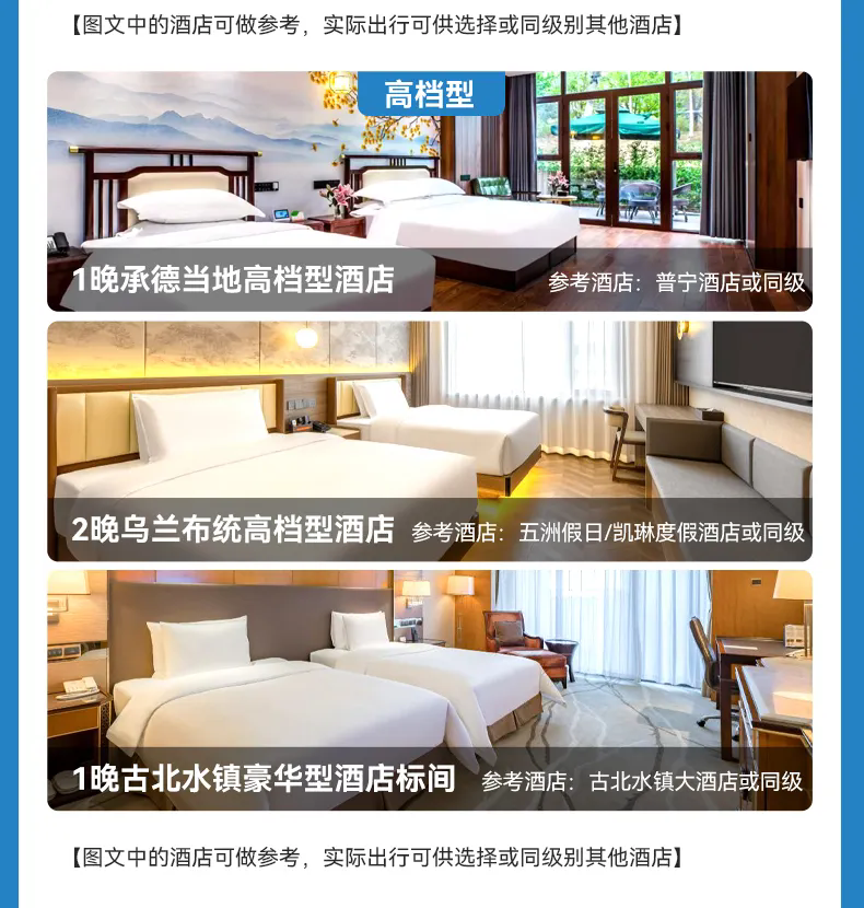住宿:承德当地舒适型酒店标间/高档型酒店标间