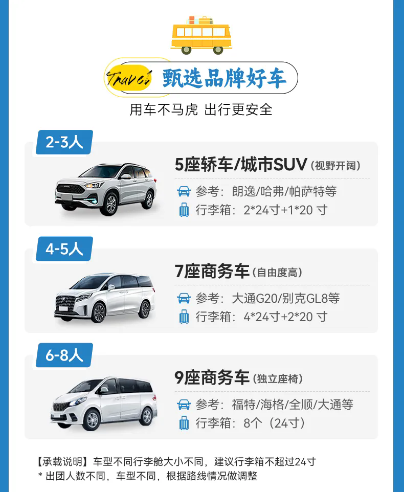 2、集合日请大家保持通信畅通,以便司机兼向导联系到您!