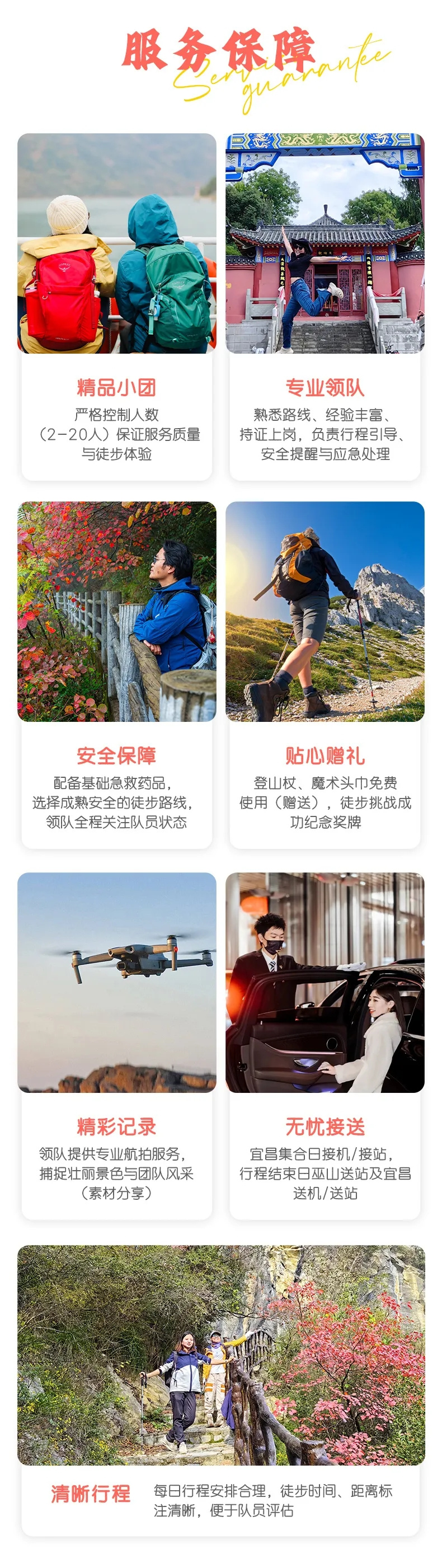 3. 本产品属于秋季产品,秋景确定时间不确定的,正常是11月份秋景,但是也有提前或延后情况,游玩时请合理对待实际景色;