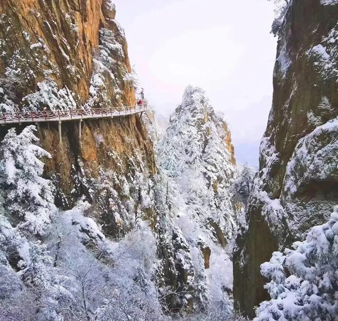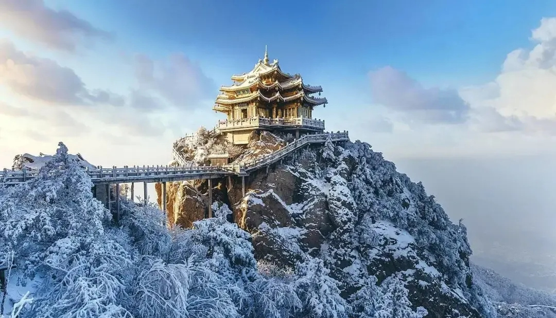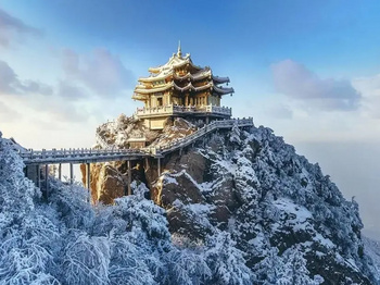 老君山四季皆景唯有冬季,最为迷人、浪漫。流连于浩瀚雪景,邂逅冬季老君山独特的尊容和韵味。 群山银装素裹,仿若山间的精灵们扑扇着翅膀。洒下一串串晶莹的冰凌,闪闪的挂在树枝上,将老君山装饰得更加梦幻。