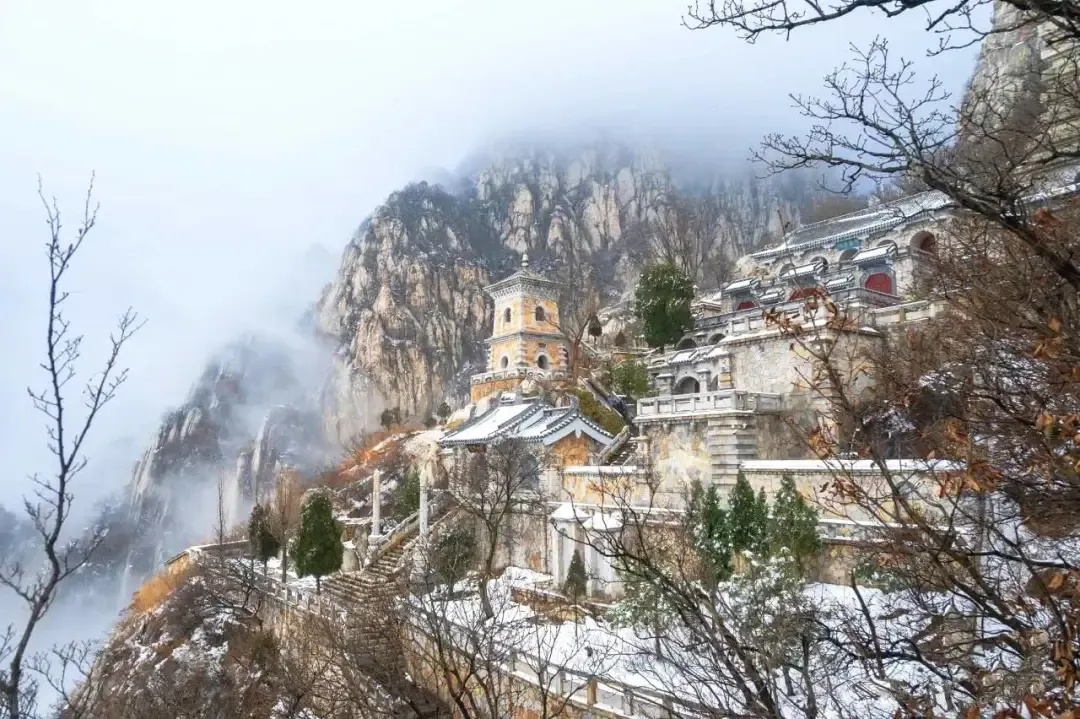 嵩山的自然风光还体现在其四季变换的景色上。特别是冬天,嵩山银装素裹,白雪皑皑,展现出一种静谧而神秘的美。