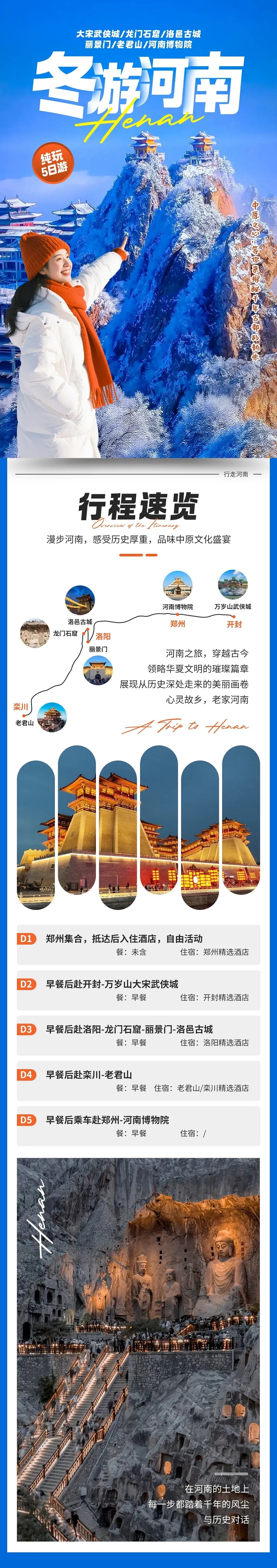 酒店早餐后赴洛阳,游览国家重点文物保护单位、“世界文化遗产、中国三大石窟艺术宝库 之一的【龙门石窟】。龙门石窟现存佛像十万余尊、窟龛二千 三百多个,可谓是中国石窟艺术的宝藏,是北魏至唐代皇家贵族发愿造像最集中的地方,北魏时期洞窟以 古阳洞、宾阳中洞和莲花洞、石窟寺最具代表价值,典型地反映了北魏王朝举国崇佛的历史情态,也是中 国传统文化与域外文明交汇融合的珍贵记录;唐代洞窟中,以规模宏伟、气势磅礴的奉先寺大卢舍那像龛 群雕最为著名,代表着唐代雕刻艺术的巅峰成就,是我国石刻艺术的典范之作,被誉为“东方维纳斯”,后游览中国历史上最典型、最优秀的城门——【丽景门】。丽景门始建于隋代,据《唐两京城坊考》记载,东都皇城西面有两门,南丽景门,北宣辉门。是洛阳古城的西大门。由城门楼、瓮城、箭楼、城墙和丽景桥(古时为吊桥),护城河等部分组成,其城垣高厚,月城宏阔,重门叠关,上干浮云,气势磅礴,成为洛阳老城历史文化古城街区的龙头。其规模之宏大在河南古建筑中居于首位,成为洛阳古城历史文化最具特色的标志,是为中原第一楼,古都第一门。。有诗人用:“洛阳牡丹甲天下,丽景城楼世无双”,“不到丽景门,枉来洛阳城,来赞美它无限的魅力。后游览被誉为"中原渡口"的【洛邑古城文化旅游景区】,洛邑古城位于河南省洛阳市老城区。项目一期分布在洛邑古城东南角。该项目东至新街,西至金业路,南至南护城河,北至中州东路,总规划面积系1360亩,总投资逾人民币127亿元。开发周期约10年,项目分为四期,首期规划建设面积280亩。景区包含文峰塔、河南府文庙、妥灵宫、四眼井、金元古城墙遗址等多个历史时期保护建筑,是集游、玩、吃、住、购于一体的综合性人文旅游观光区,后入住酒店。