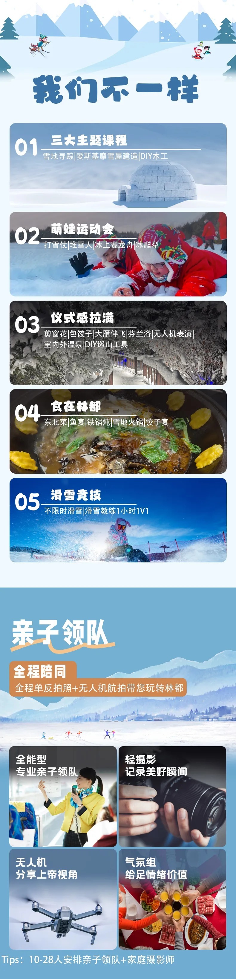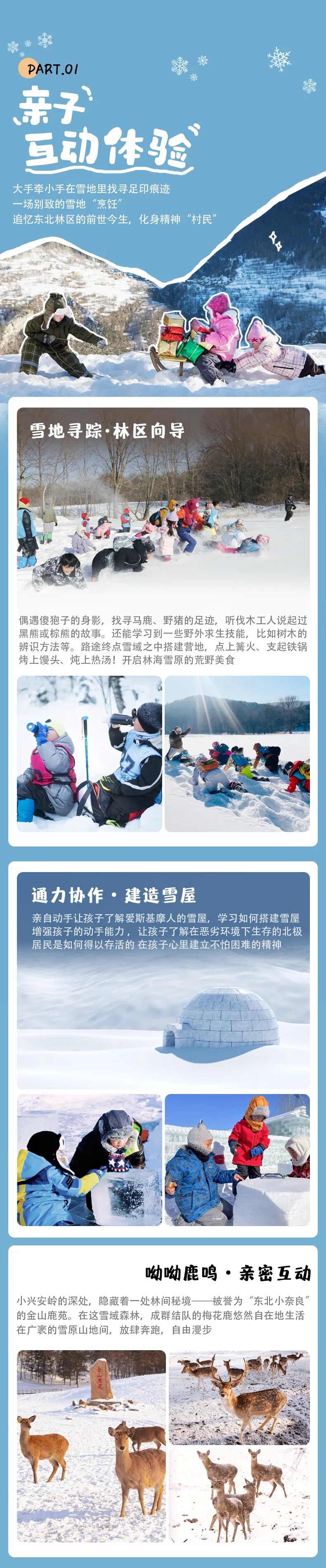小小护林员(穿越林海雪原-寻找野生动物痕迹-辨识树种)-荒野厨房(野外生存体验)-年味林都(包饺子-剪窗花)