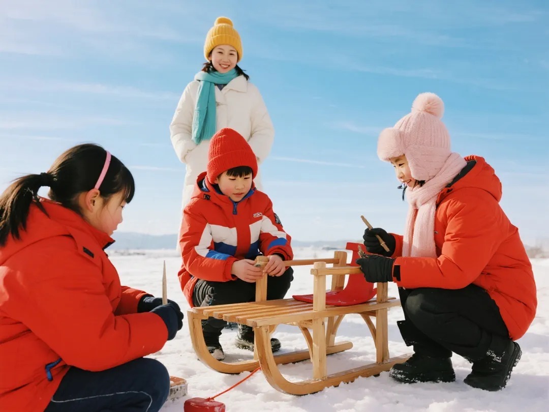 09 : 00前在研学老师的带领下制作【老式爬犁】,传承东北传统手工艺文化,让参与者深入了解东北爬犁的历史、功能与文化意义。提升参与者的动手实践能力,通过木工制作,锻炼其空间思维、精细操作与解决实际问题的能力。增进参与者之间的互动与协作,在共同制作过程中培养团队精神,同时享受手工制作带来的乐趣,释放压力。