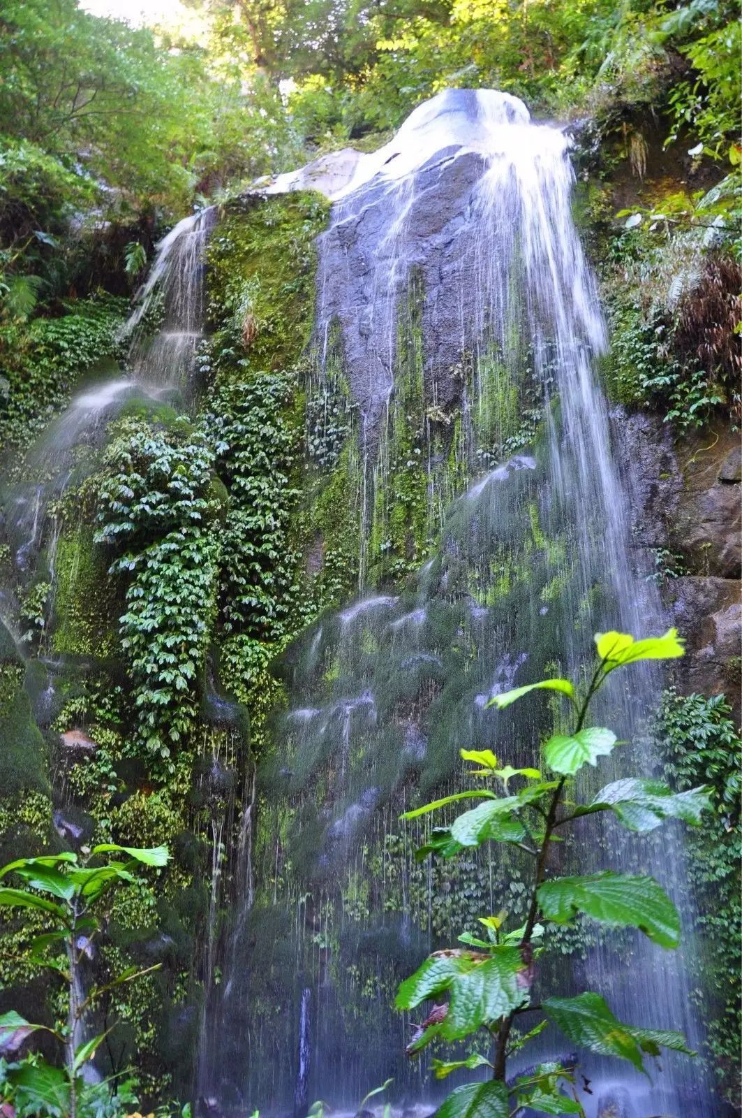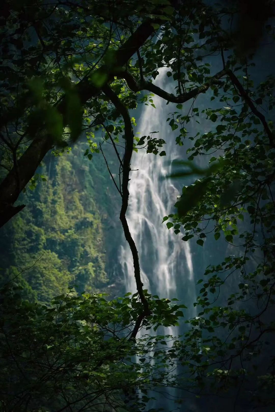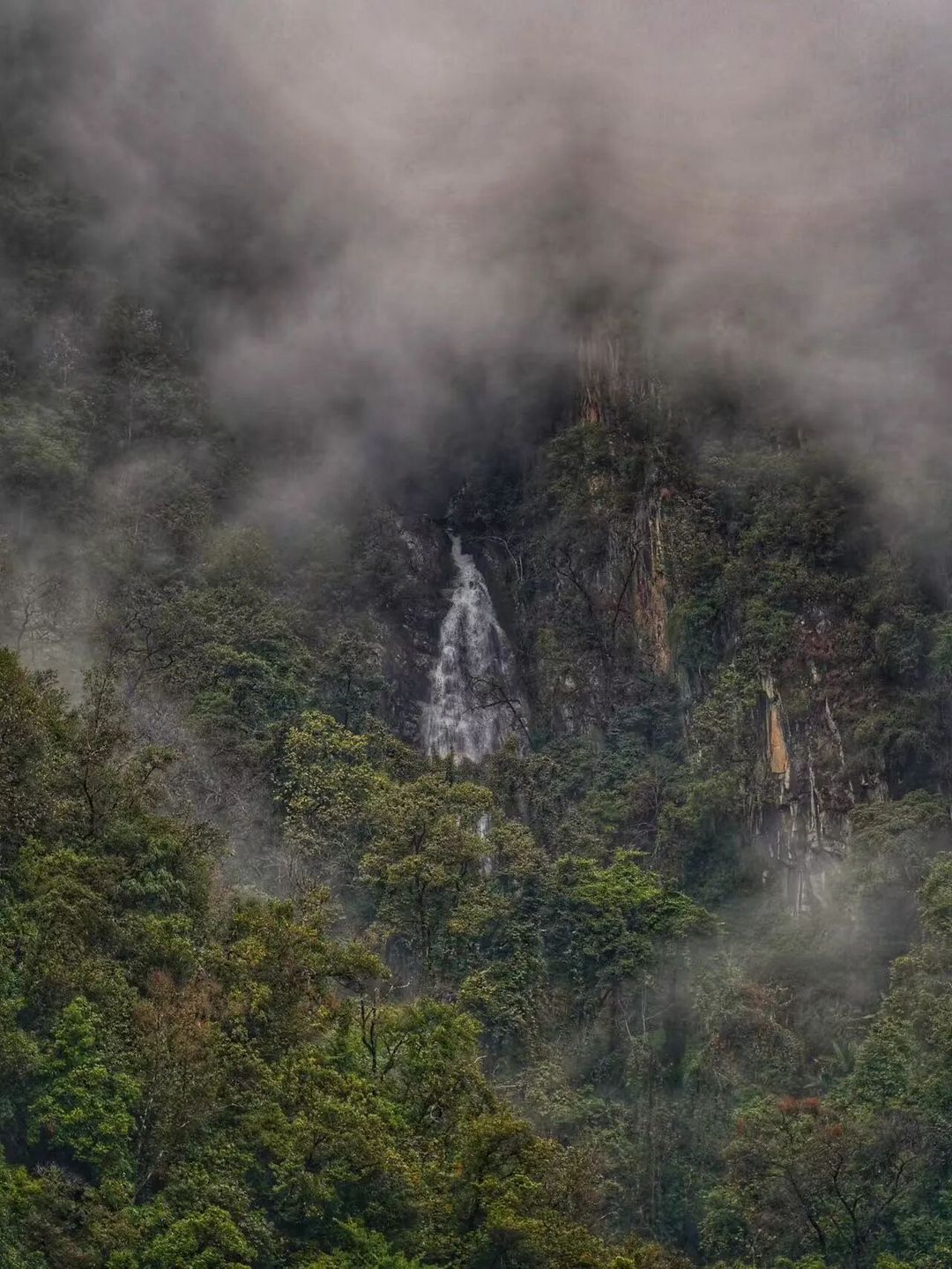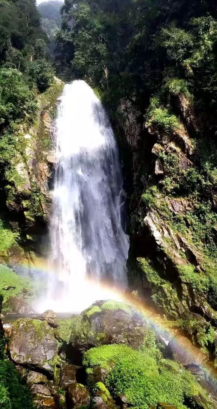 高黎贡山壮观的多叠瀑布星罗棋布。中午时分,山林、山谷被光剪辑成一幅绝妙的明暗素描,光照处,浑青一片;背光处,翠绿一顷。山们就在光的照耀下婀娜善变。瀑布却在人举目搜寻之下,忽地又从灌木丛中钻出,晶莹成一片片一条条一缕缕的白云,褐赭色的岩石在瀑布的涛声中,愈发肃穆深沉得犹如一位智者。