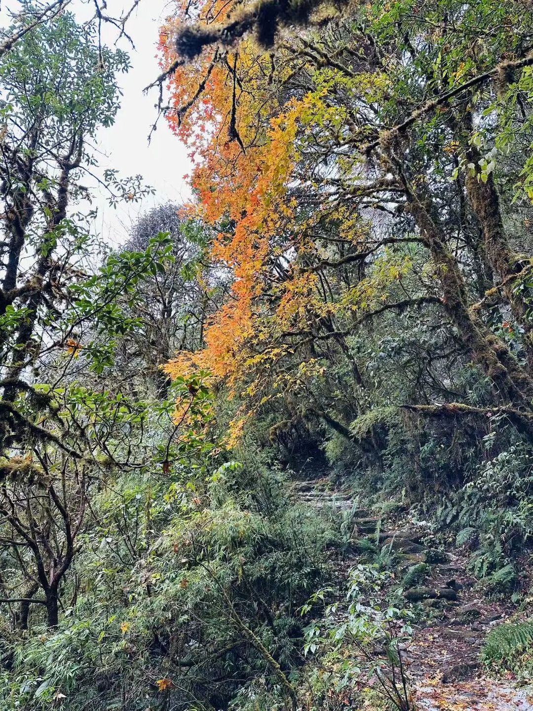 她总有一种神奇的魔力,让人忍不住靠近她,爱上她。云漫雾绕,谷壑幽深,清泉茂树,飞鸟相逐,药草蔽翳,古道被厚厚的落叶覆盖,路旁的杜鹃花与紫竹松柏相伴,森林仿似爱丽丝游梦仙境中的童话世界。