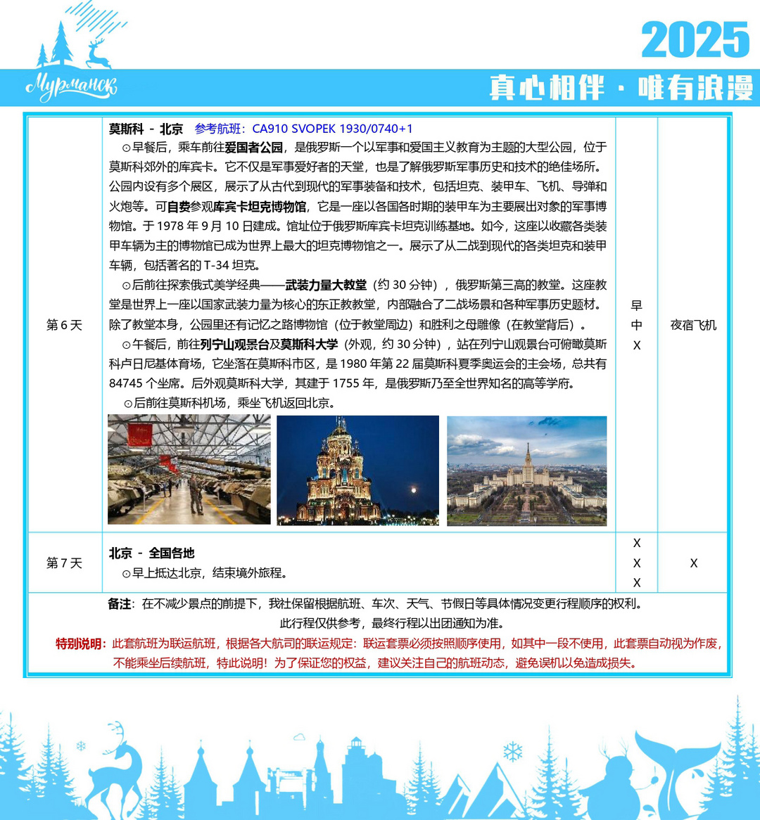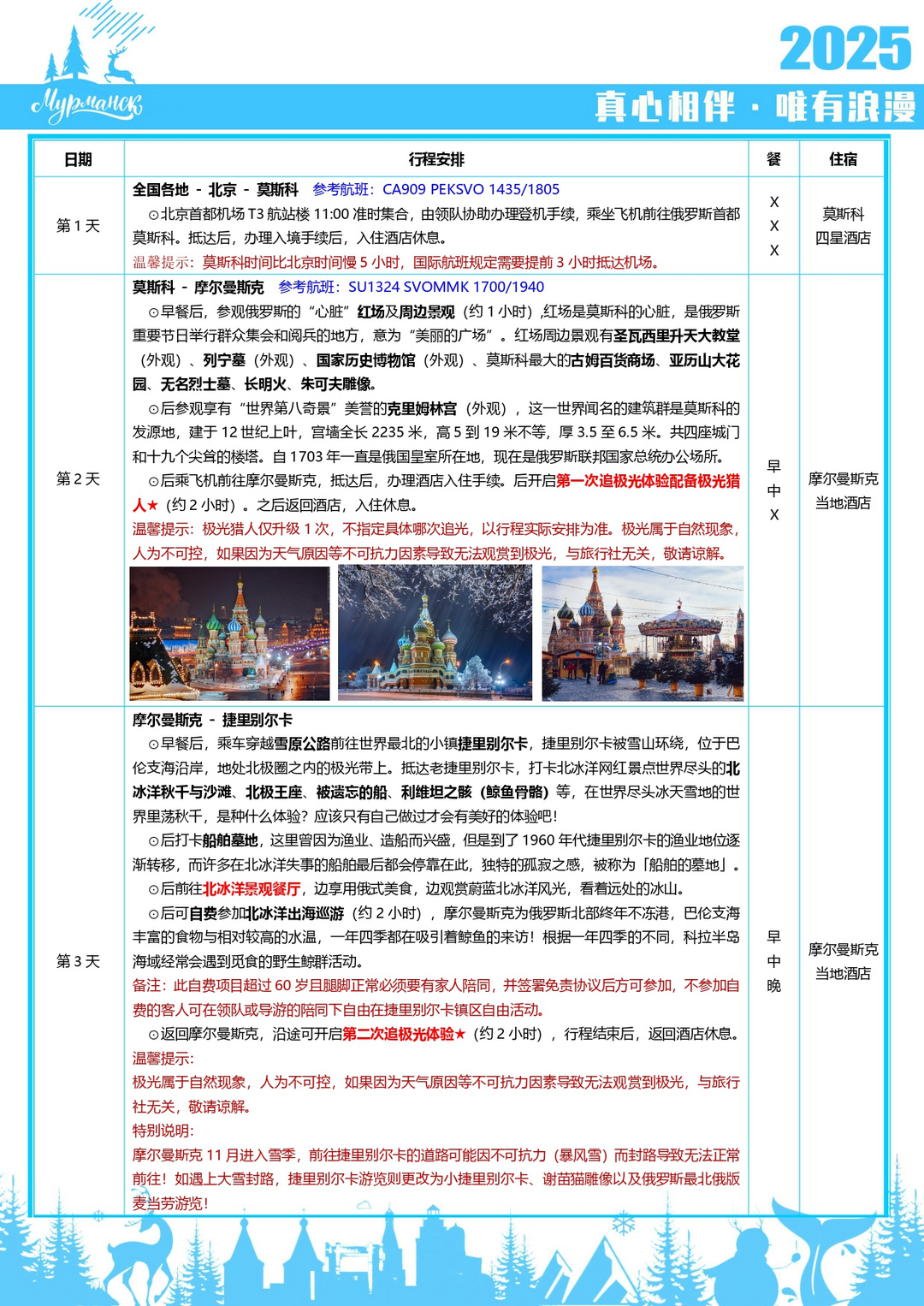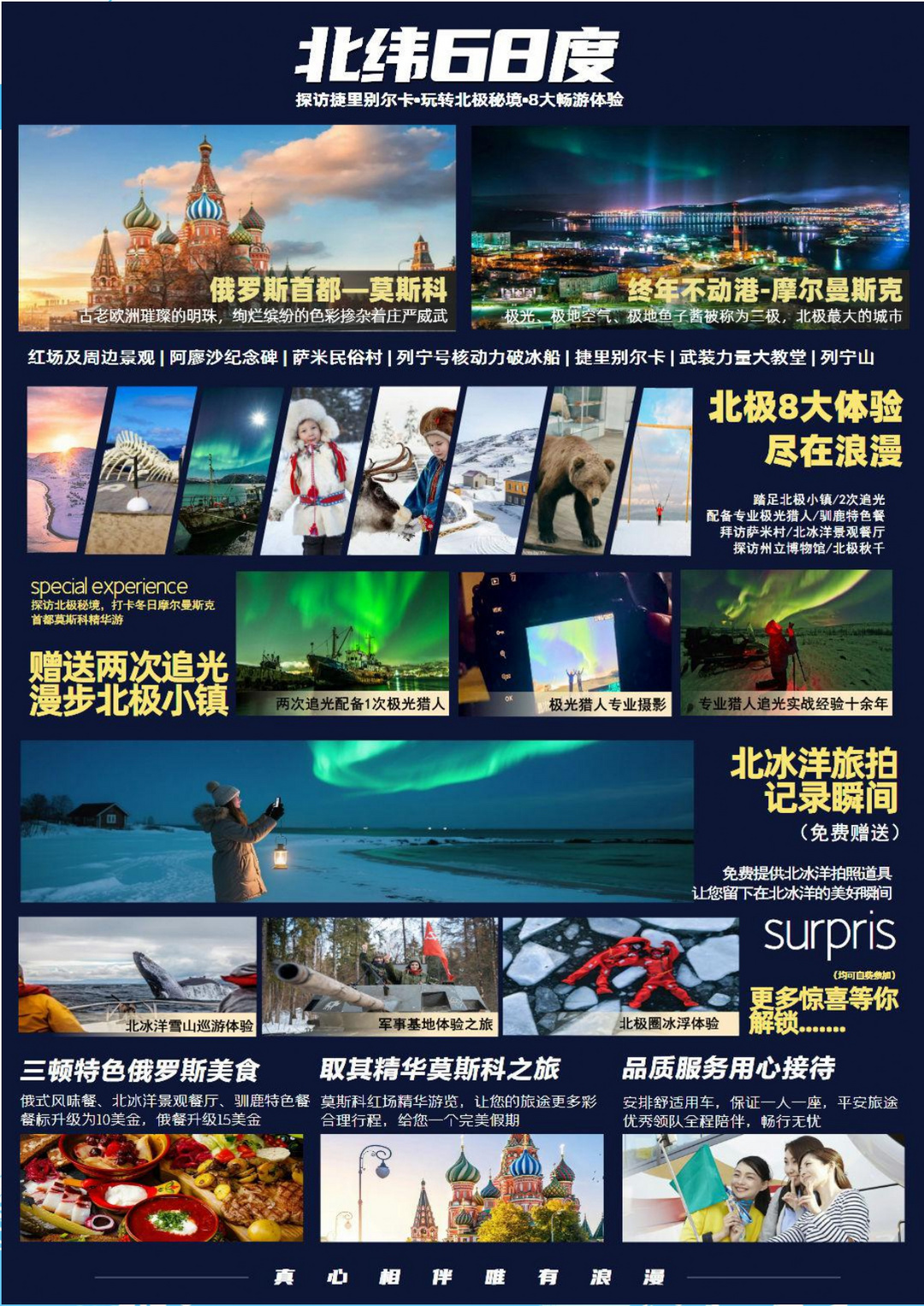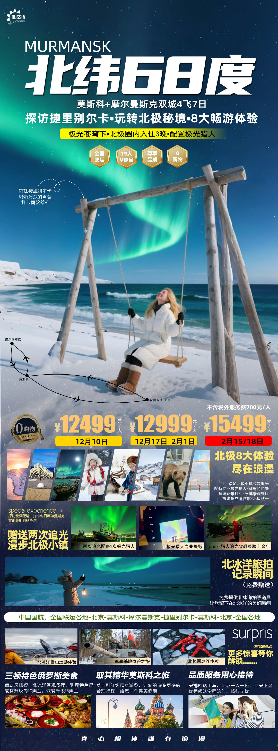 • 北纬68度追极光丨莫斯科+摩尔曼斯克双城四飞玩转北极圈(7日行程)