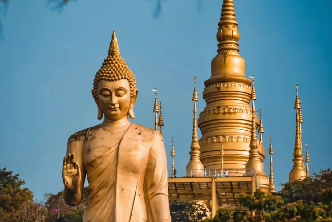 15:00 漫步至【总佛寺】,踏过镶嵌孔雀翎羽的彩釉地砖,鎏金佛塔刺痛云端。僧侣的绛红袈裟拂过百年柚木柱,诵经声与银铃和弦。跪拜的老妪将茉莉花供在佛足印石上,香烛烟迹扭曲成南传佛教的密语——信仰在此具象为视觉与听觉的双重洗礼。