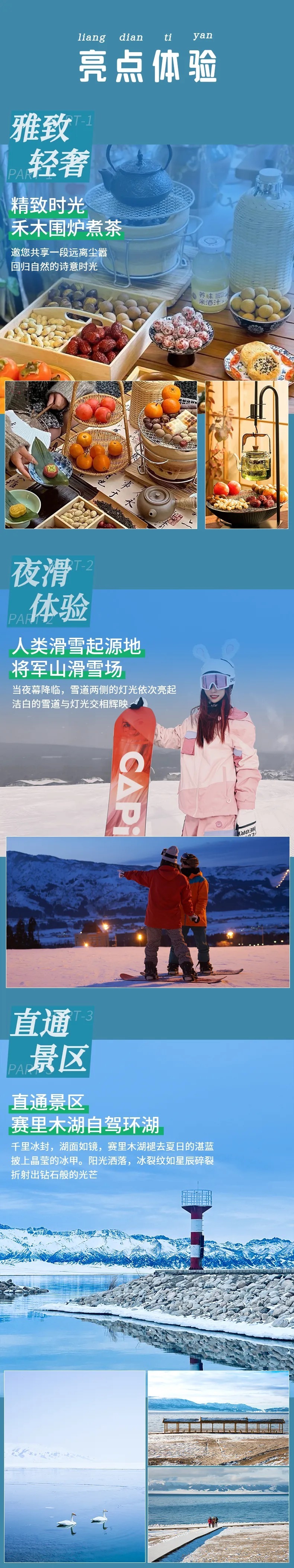 5. 滑雪场每年开放时间不定,如遇未开,改为天山天池景区,敬请谅解。
