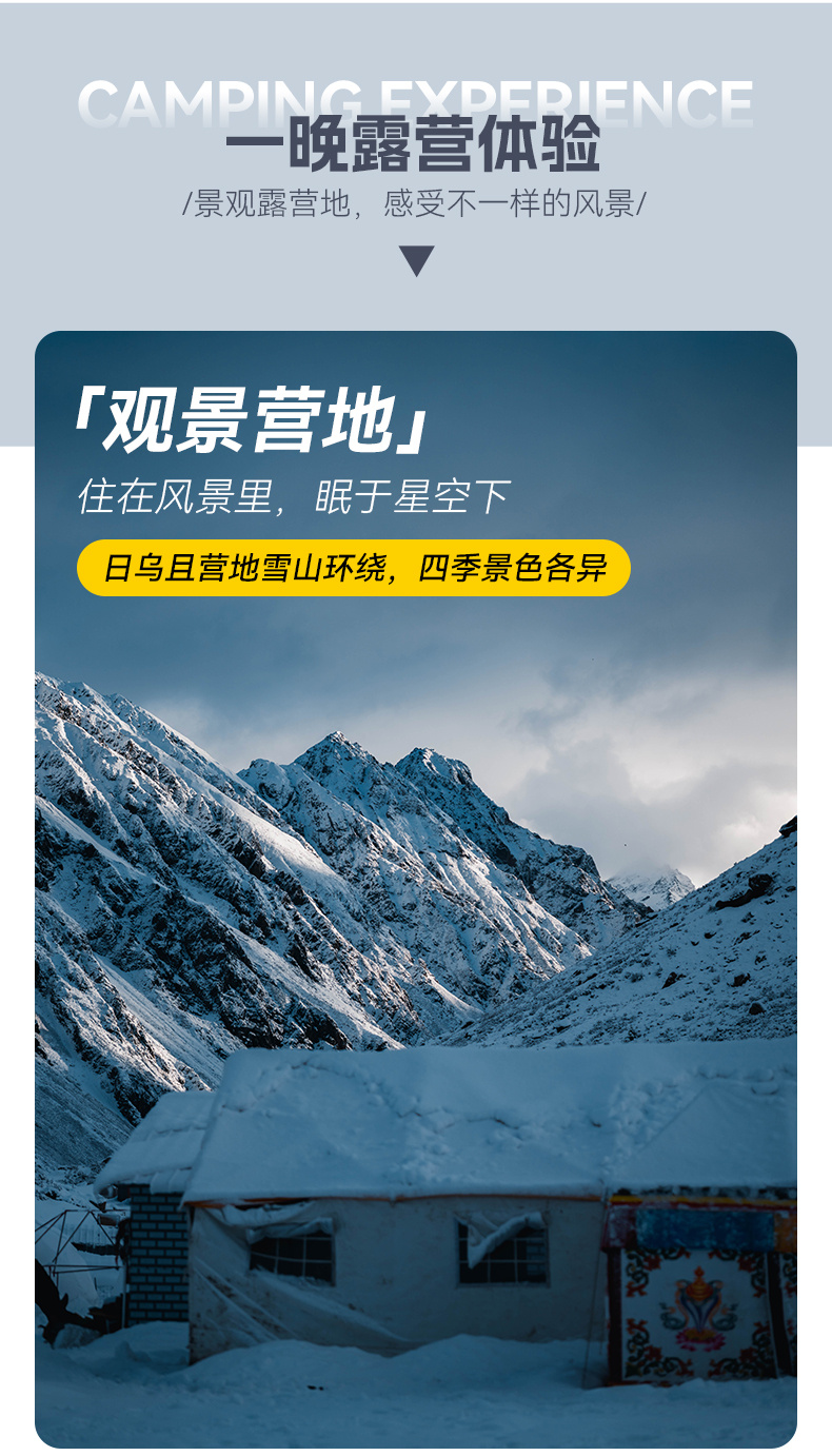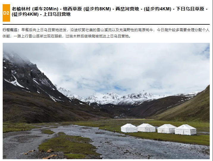①上日乌且营地露营1晚(通铺床位,含睡袋),如需要单住帐篷,需要补差100元/顶;