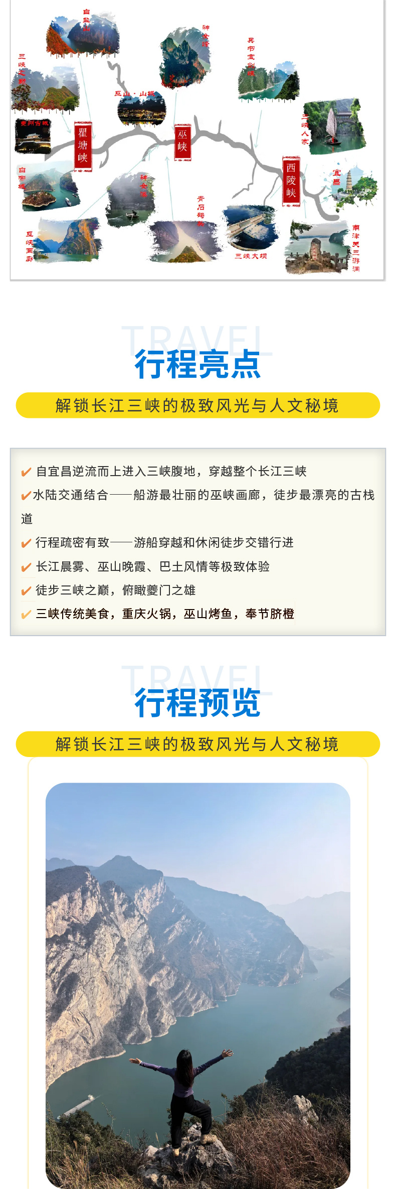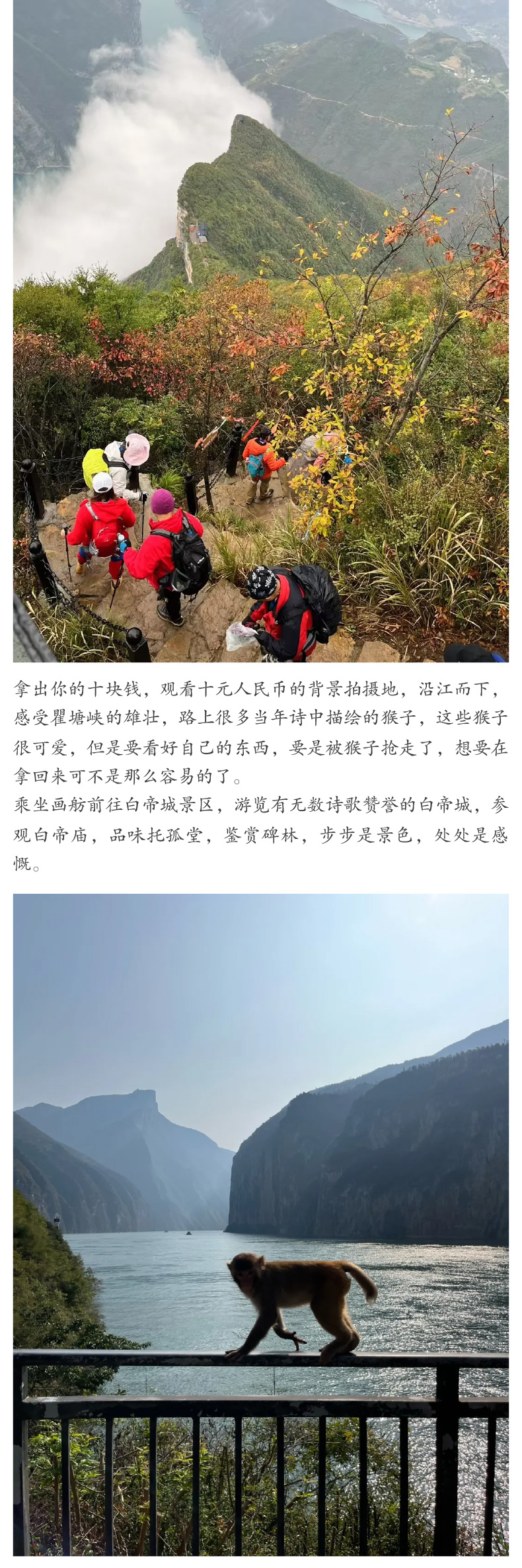 A:只要不是大暴雨,行程都是可以正常走的,请自备雨衣。秋雨蒙蒙的时候,巫峡上空的云雾翻腾,十分壮观,我们徒步三峡画廊从上往下俯瞰巫峡,就完全能理解诗人元稹写下“除却巫山不是云”这句诗的时候的心情了!