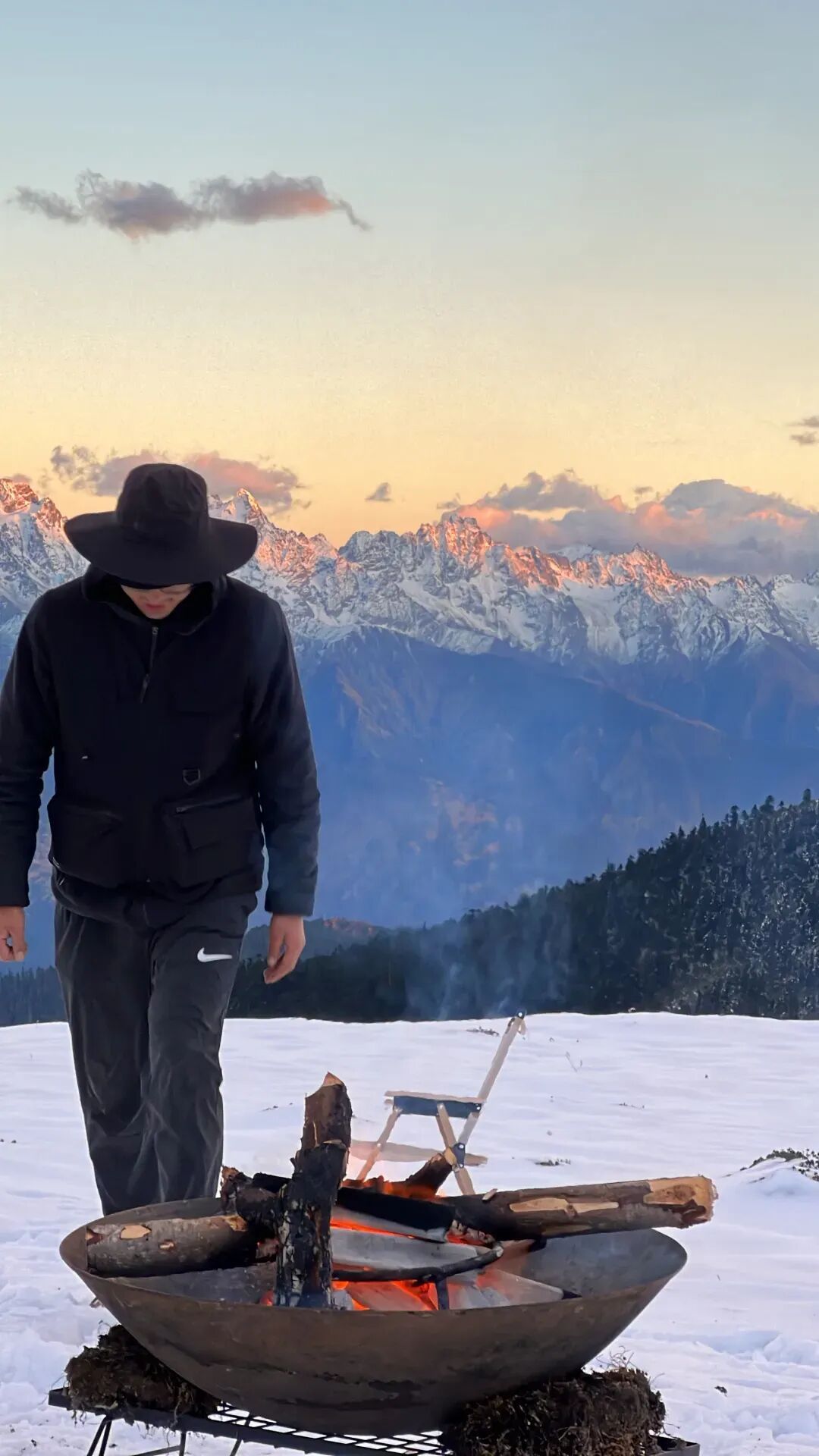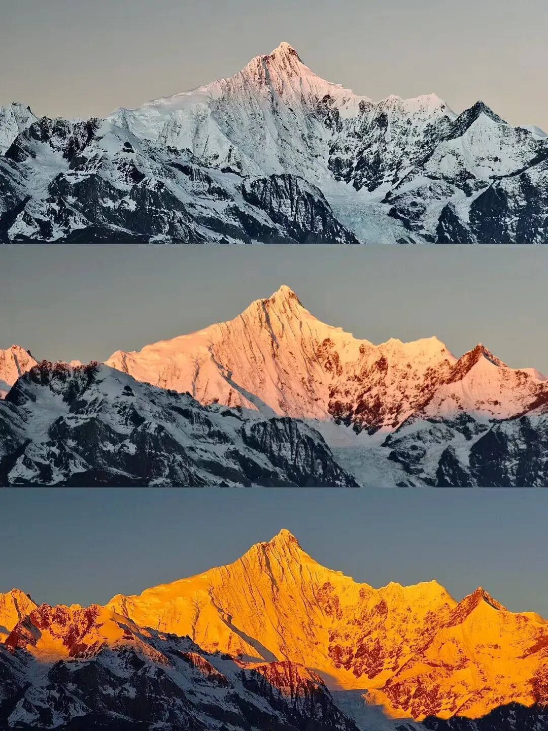 ▲崩格顶营地拍摄卡瓦格博日照金山