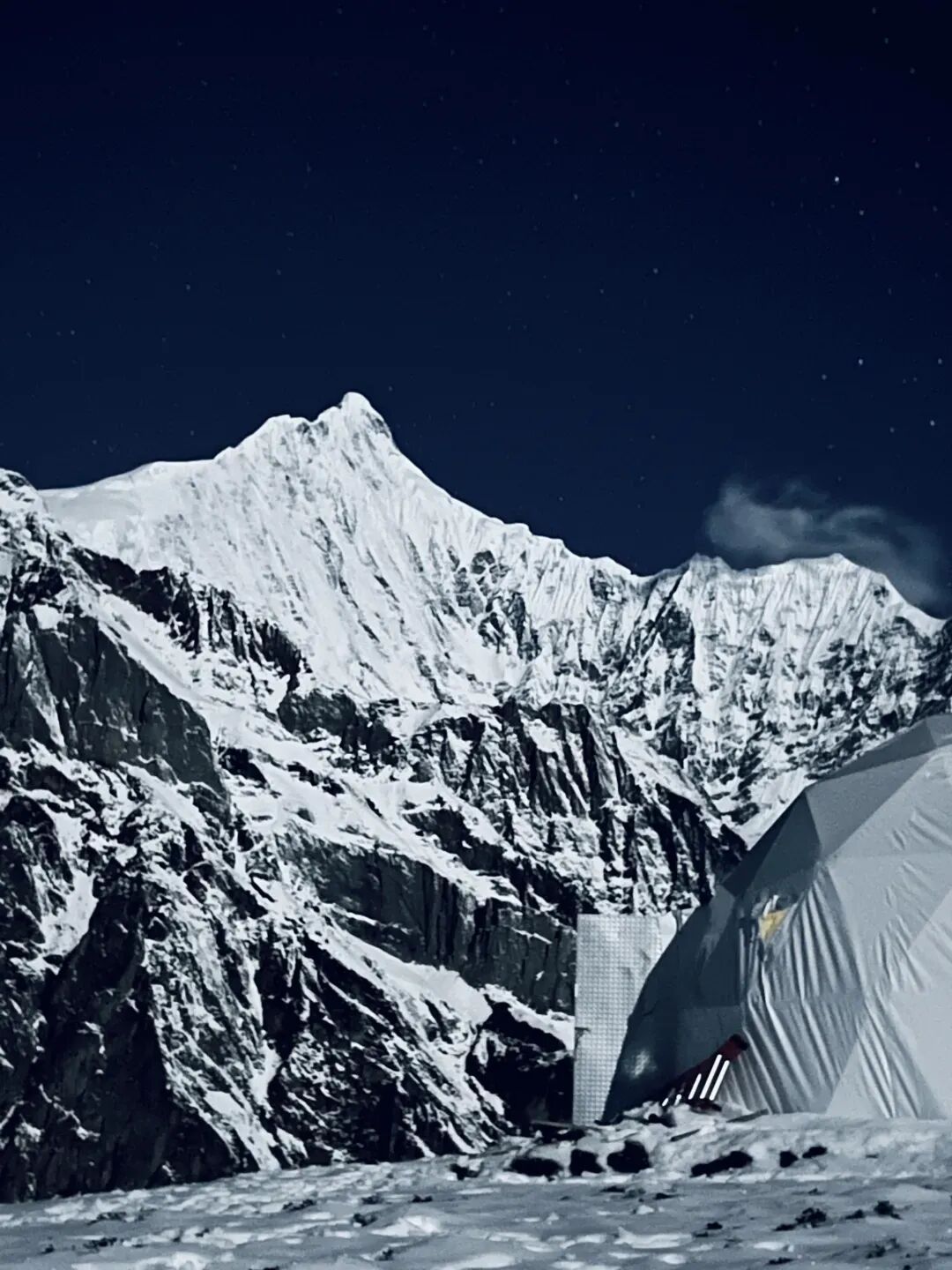 ▲崩格顶营地拍摄夜晚的卡瓦格博