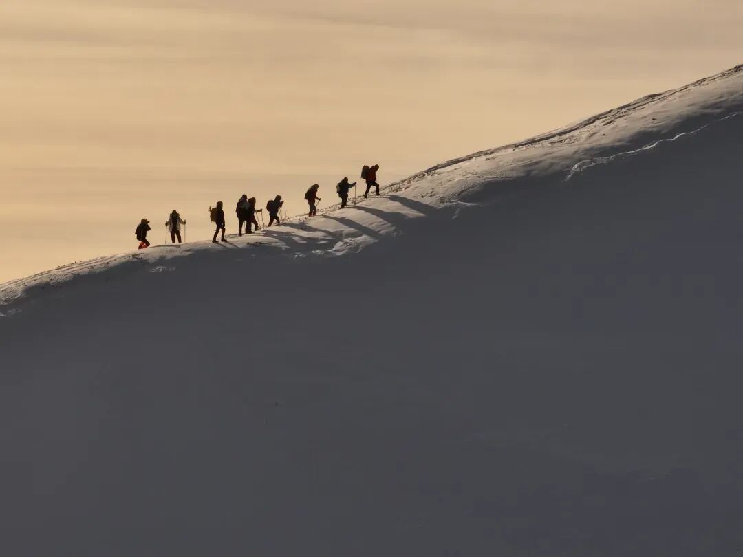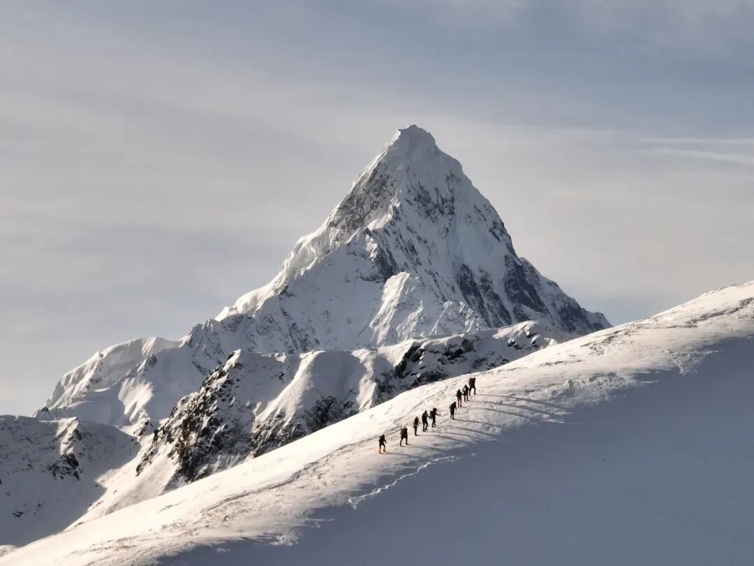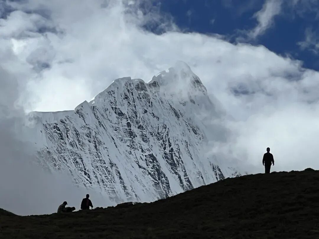 ▲ 崩格顶的山脊,在永恒的卡瓦格博面前,人类的剪影显得如此单薄。