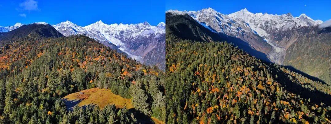 穿越卡瓦格博的疆域,从原始森林的豁口中撞见偌大如长河般的明永冰川从卡瓦格博脚下一路咆哮向大地村庄……