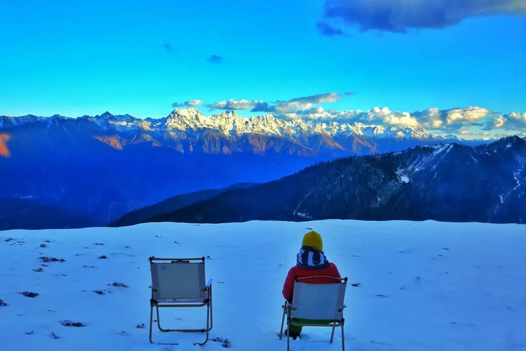正后方则是渺渺天空之外毫无遮挡的「白马雪山」俊俏身姿;在这里的清晨与夜晚将饱受日出云海、日照金山与梅里群星的馈赠。