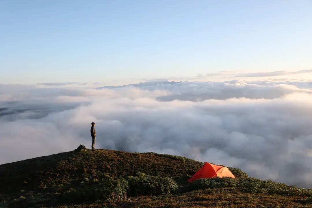 ▲ 崩格顶营地身后的白马雪山云海及卡瓦格博下方谷地的云海,傍晚时分还能欣赏到白马的日落金山。