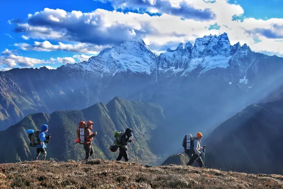 行走在山脊线上,以更开阔、直观的视角欣赏梅里的壮美,雪峰与古冰川的遗迹仿佛近在咫尺。