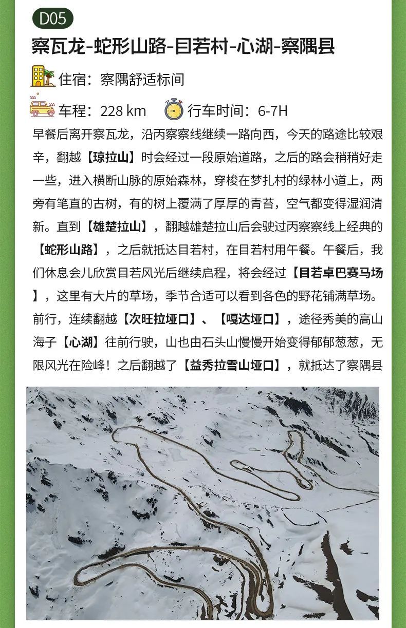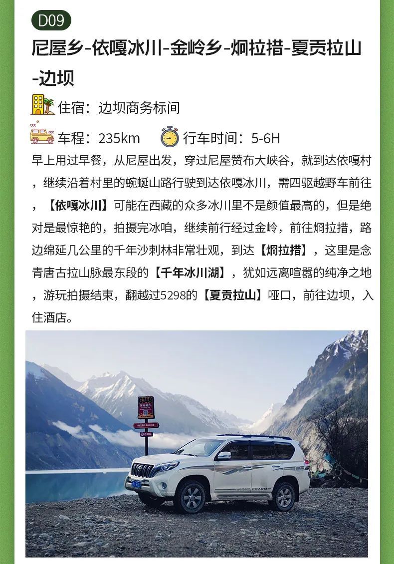 备注:此路线需办理边防证,需要户籍地,或长住地提前办理,藏区沿途条件有限,有证件(军官证,学生证等门票优惠部分退回)