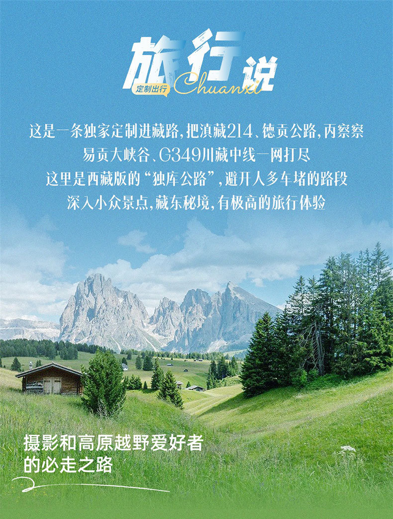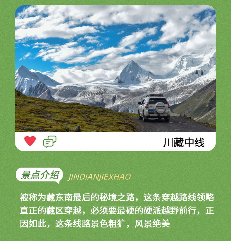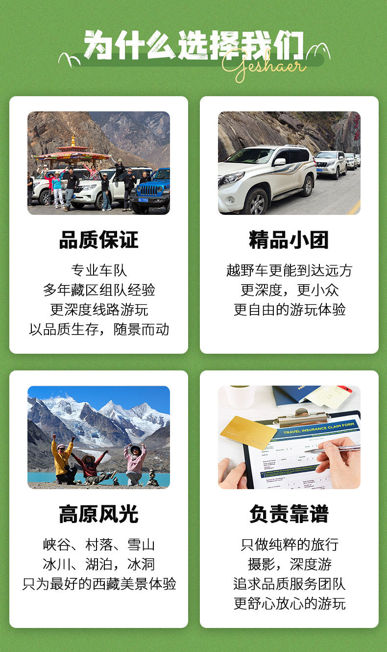 此路线本车队提供普拉多硬派越野,司导长期带队于藏区,熟悉路线,车技娴熟,熟悉当地人文,定期出发前检车,洗车,给大家最舒适的游玩体验