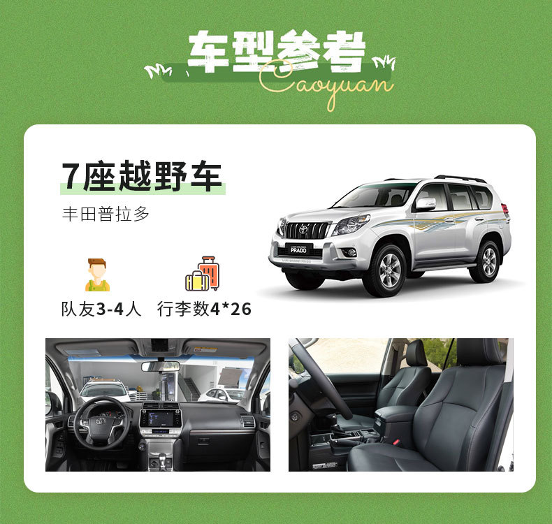 1. 行程车费 (丰田普拉多或陆巡等硬派越野车);