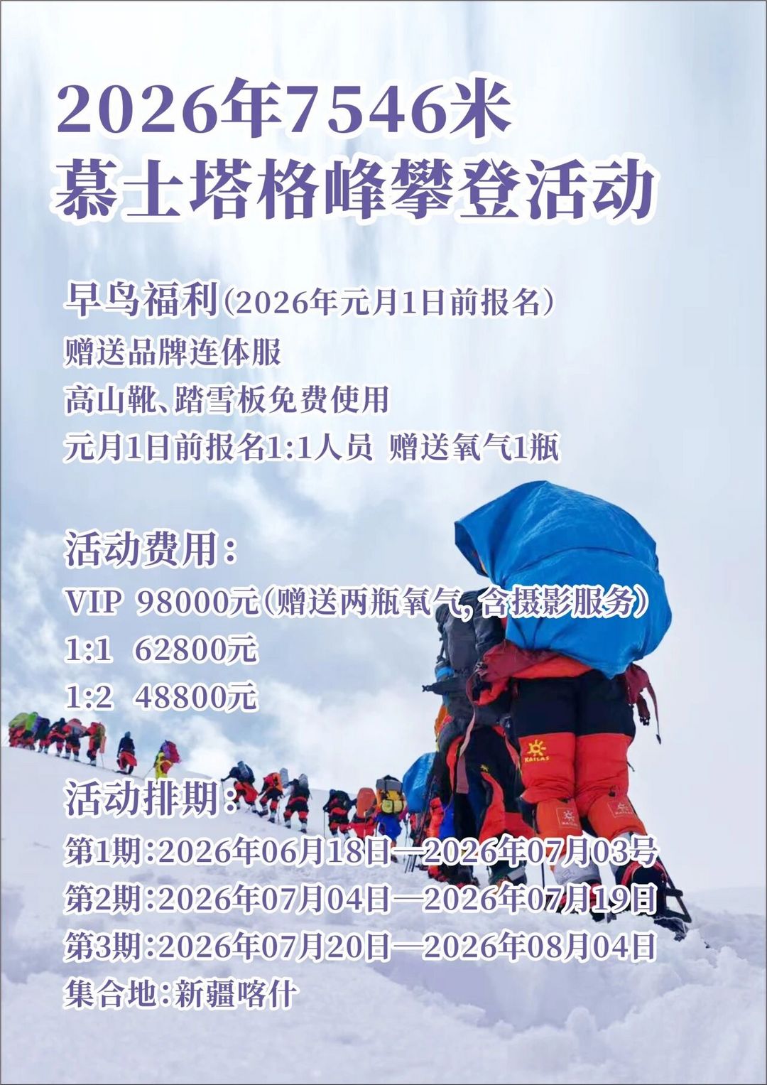 3. 因登山属于特殊户外活动,组织攀登活动需提前做相关报备和各种物资筹备及人员调配,故缴纳定金且向国家体育总局申办了登山许可后出退出活动,将按照一定的比例扣取相应的费用。2026年3月20前取消,定金全部退还;2026年6月21日至集合日前20天取消,定金不退还,活动可延到下一期或下一年度。